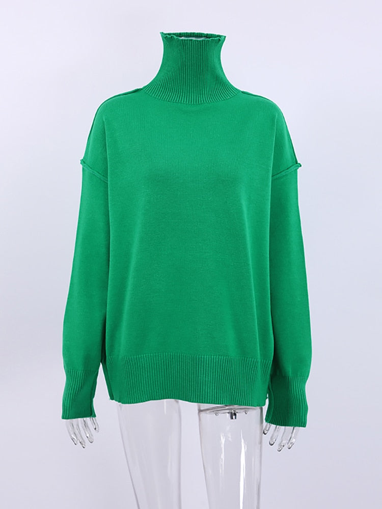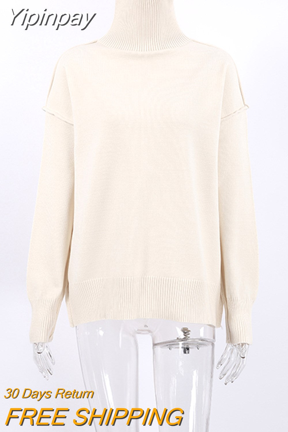Yipinpay Warm Turtleneck Sweater Women Drop Shoulder Knitted Winter Oversized Pullover Long Sleeve Loose Knitting Tops Female