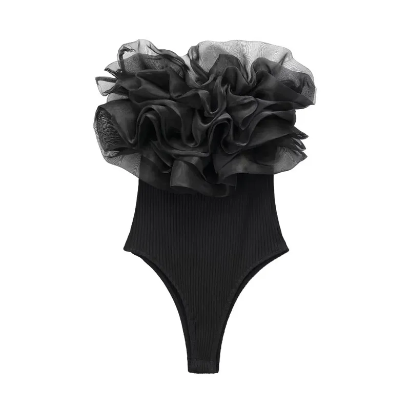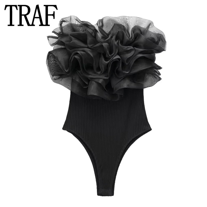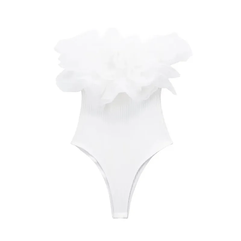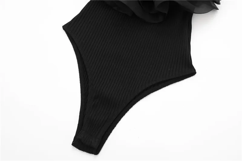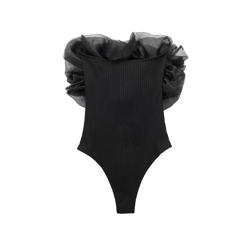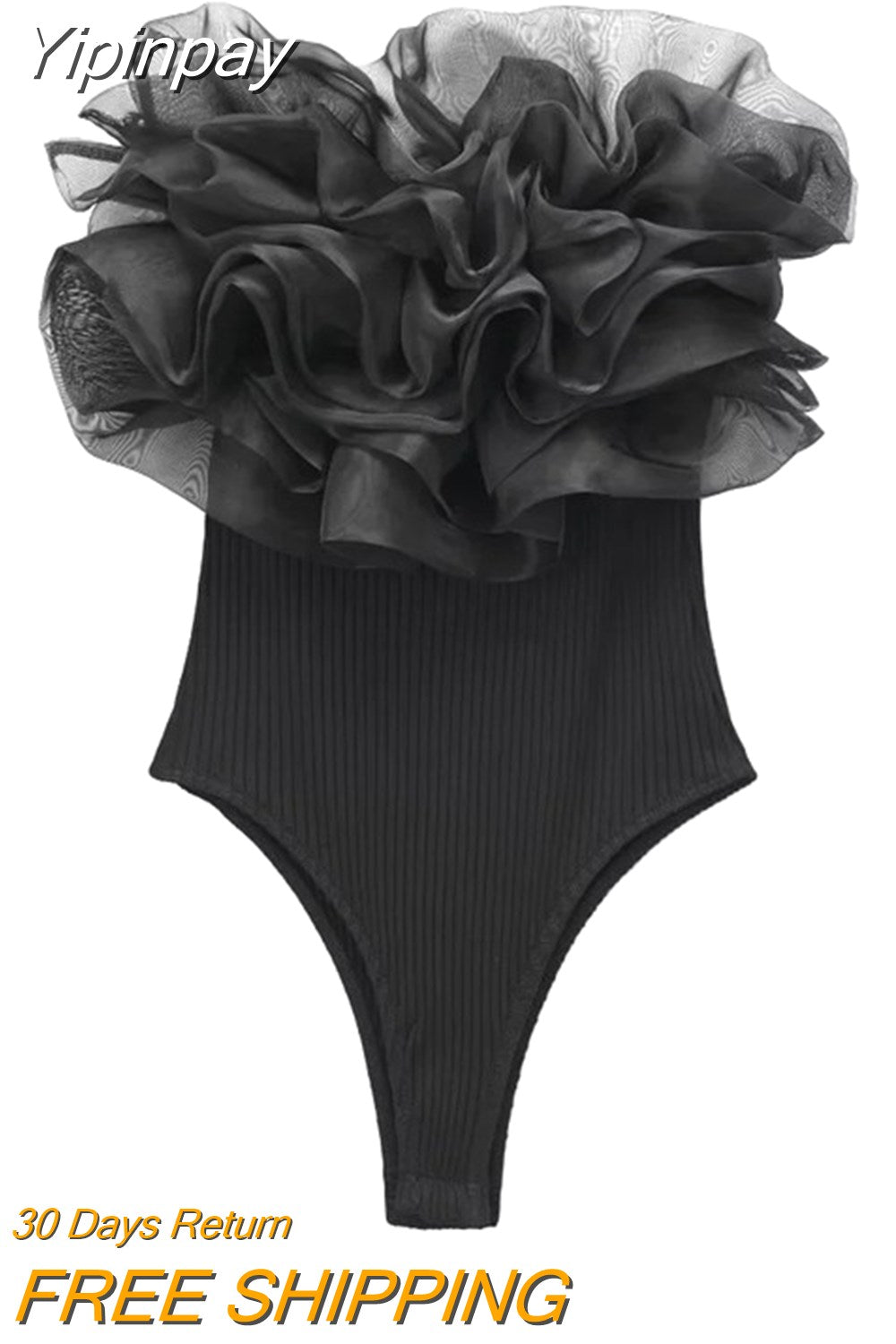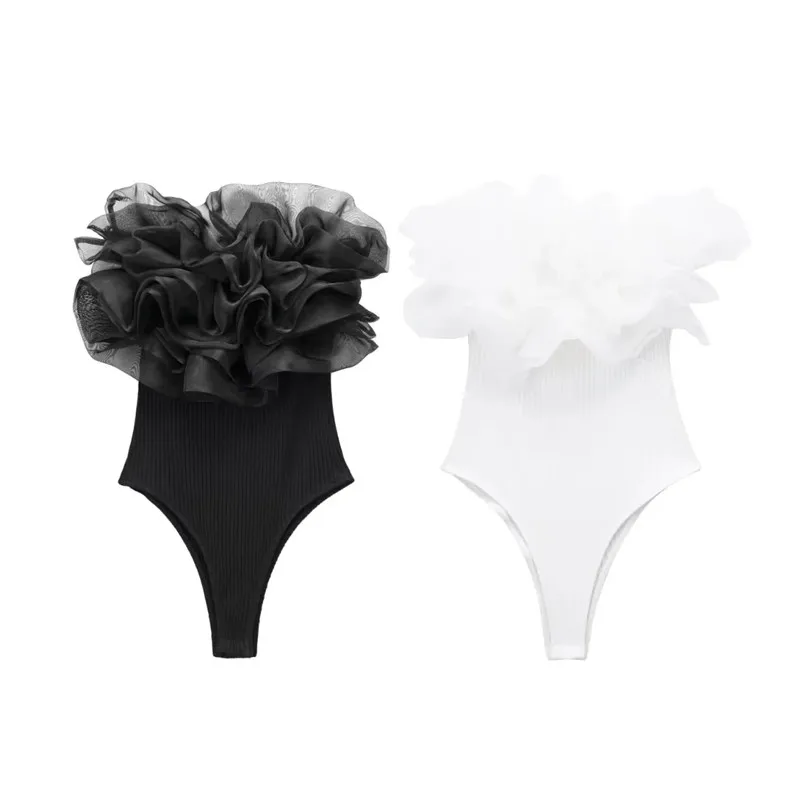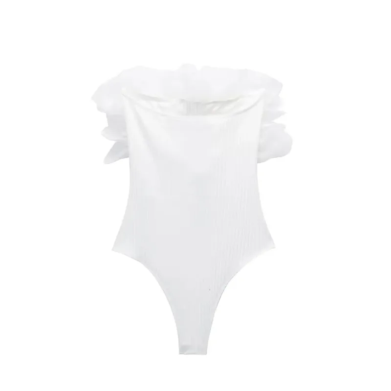 Yipinpay White Body Woman Organza Ruffle Bodysuit Women Off Shoulder Sexy Body Lingerie Sleeveless Bodysuit Summer Backless Tops