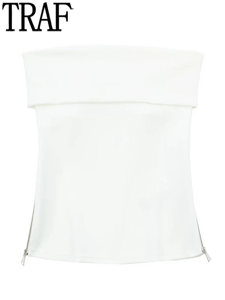 Yipinpay White Corset Top Women Off Shoulder Tube Top Female Zipper Backless Sexy Tops Woman Bustier Sleeveless Streetwear Y2k Tops