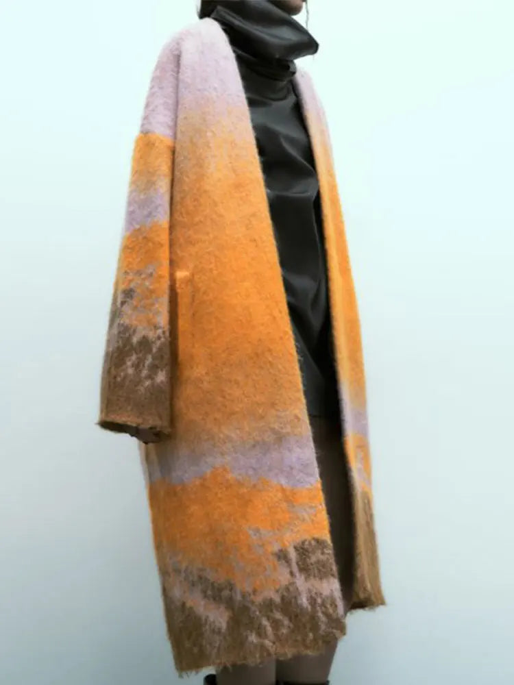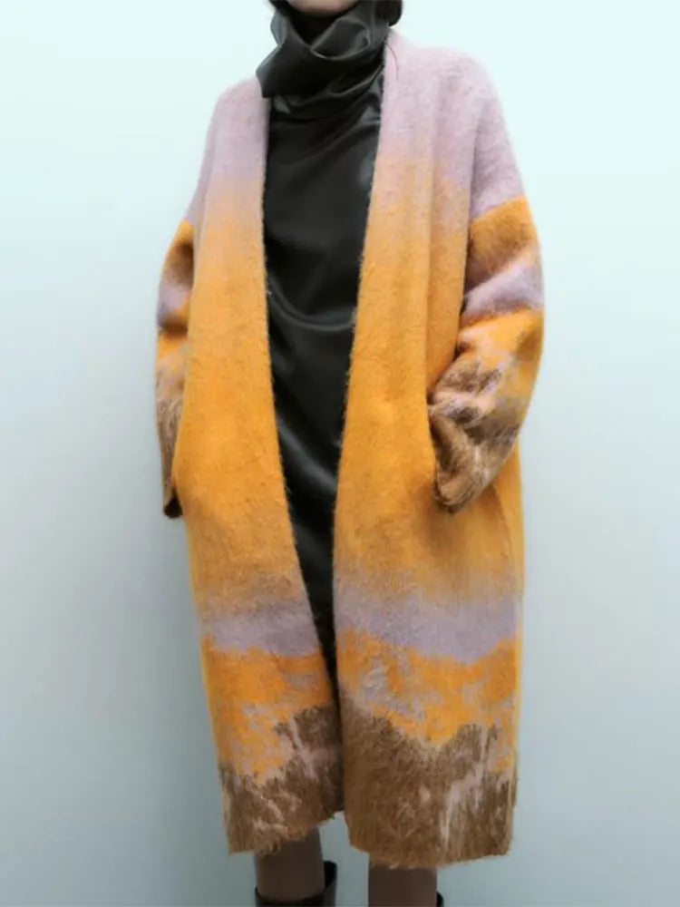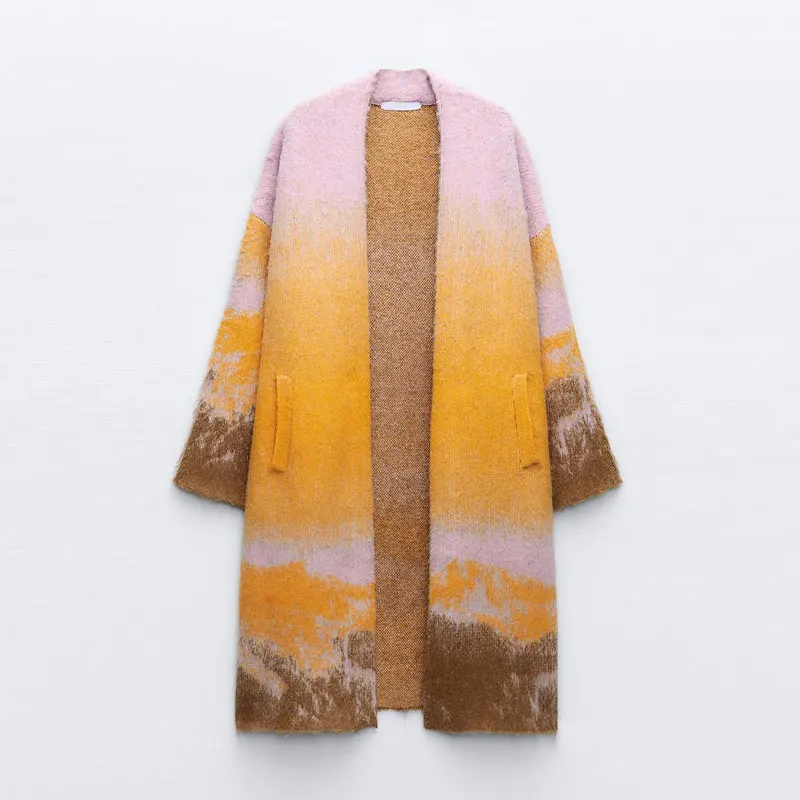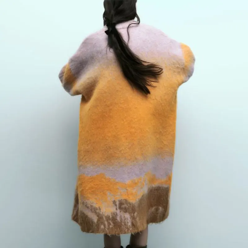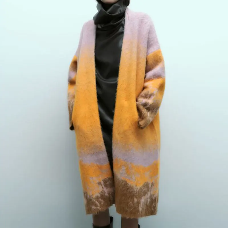 Yipinpay Winter Fashion Women's Cardigan Casual Loose Thick Long Sleeve Sweater With Pockets Vintage Street Knit Top Sweater