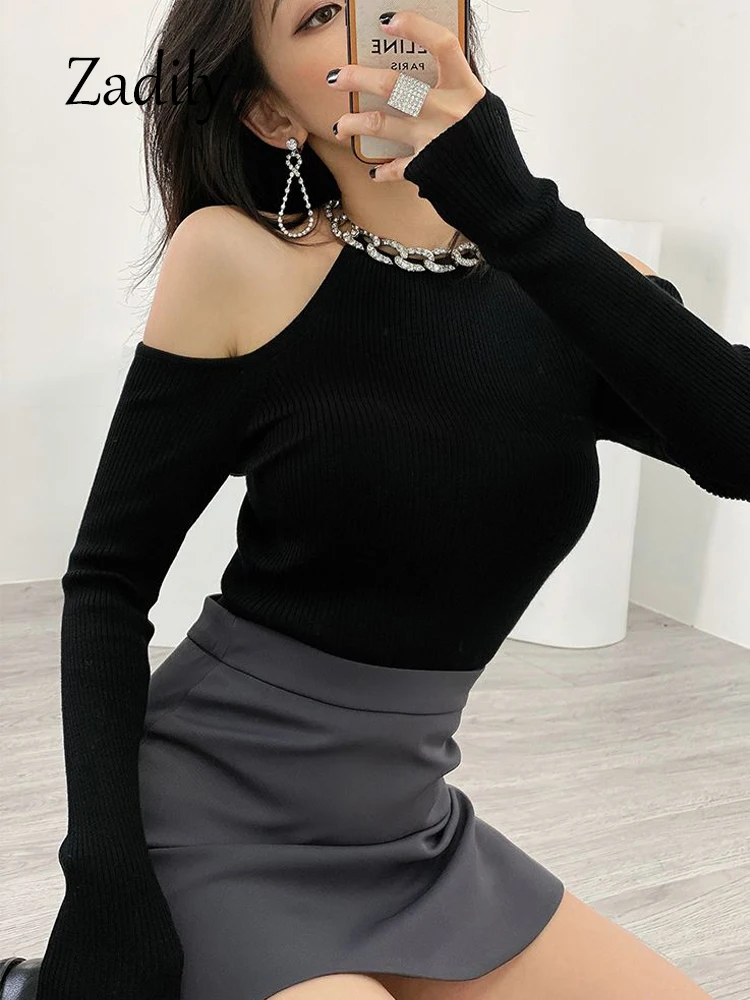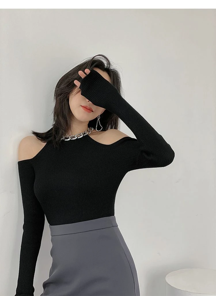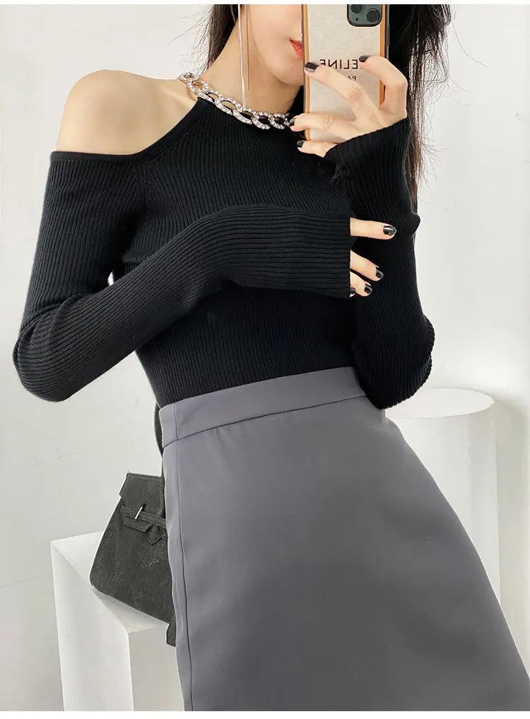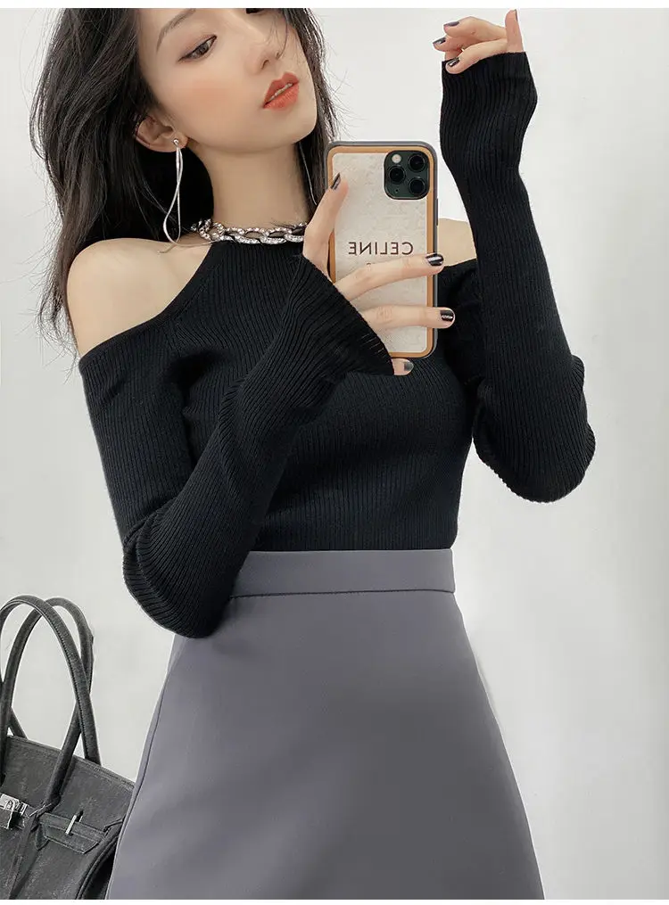 Yipinpay Winter Sexy Off The Shoulder Long Sleeve Women Sweater Korea Style Slim Fit High Strech Knit Pullover 2023 New In Tops
