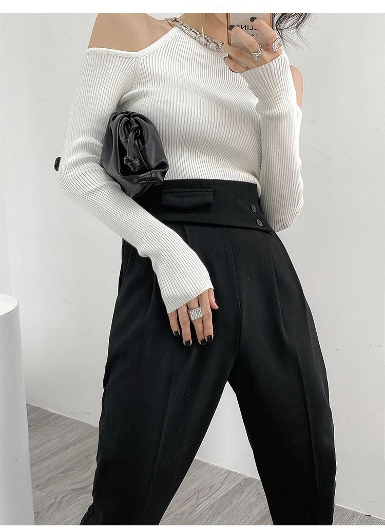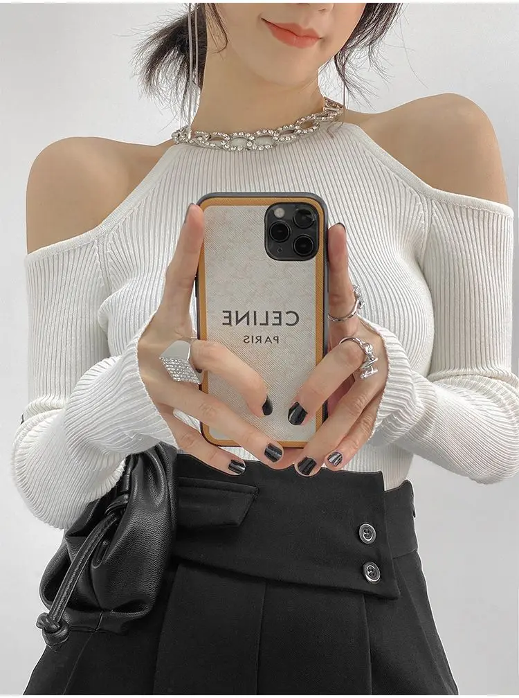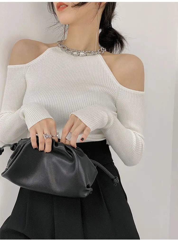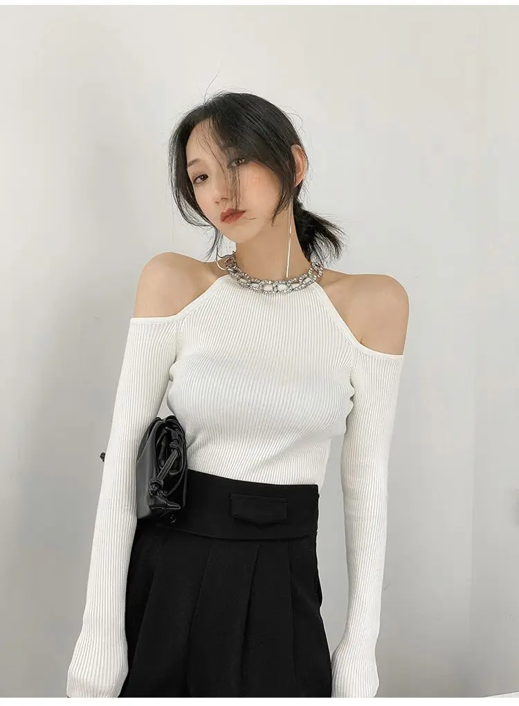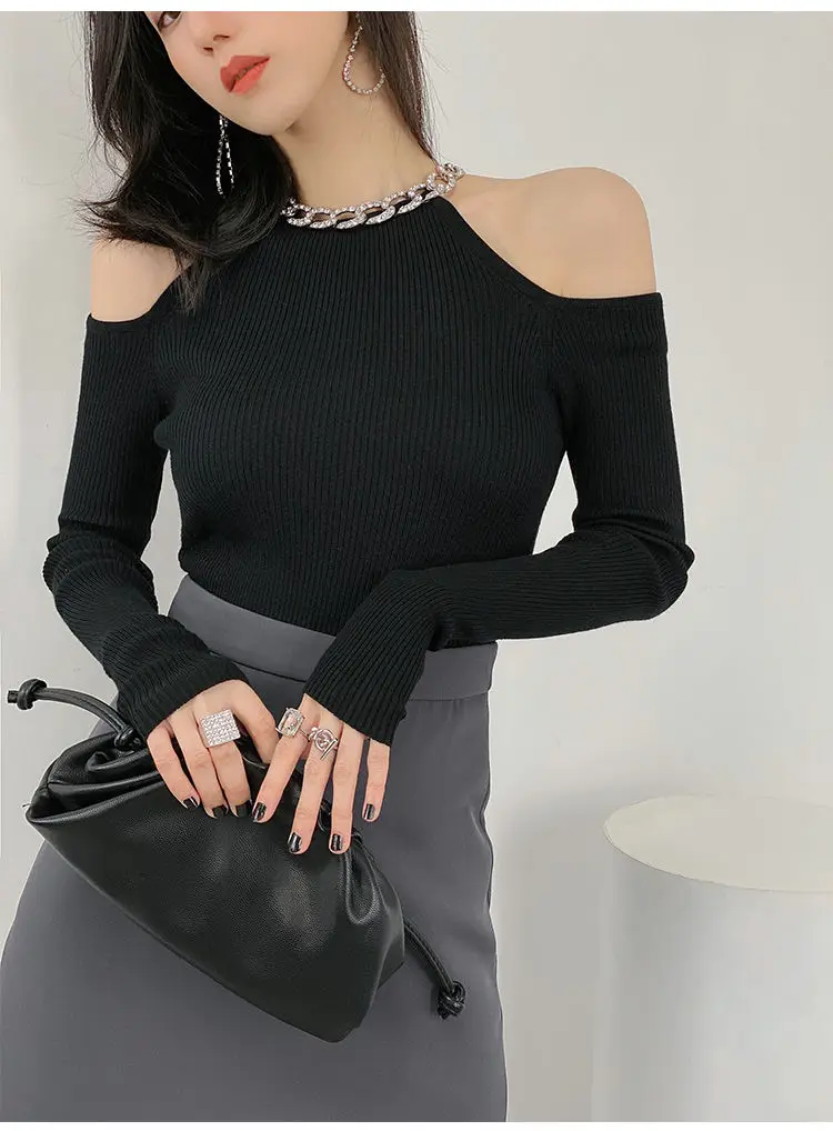 Yipinpay Winter Sexy Off The Shoulder Long Sleeve Women Sweater Korea Style Slim Fit High Strech Knit Pullover 2023 New In Tops