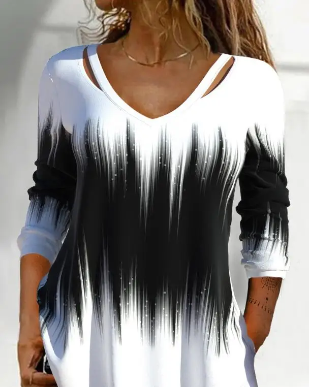 Yipinpay Woman Blouses Shirt Ombre Abstract Print Long Sleeve Top Clothing T-Shirts Pullover Top Autumn Winter New Female Outfits
