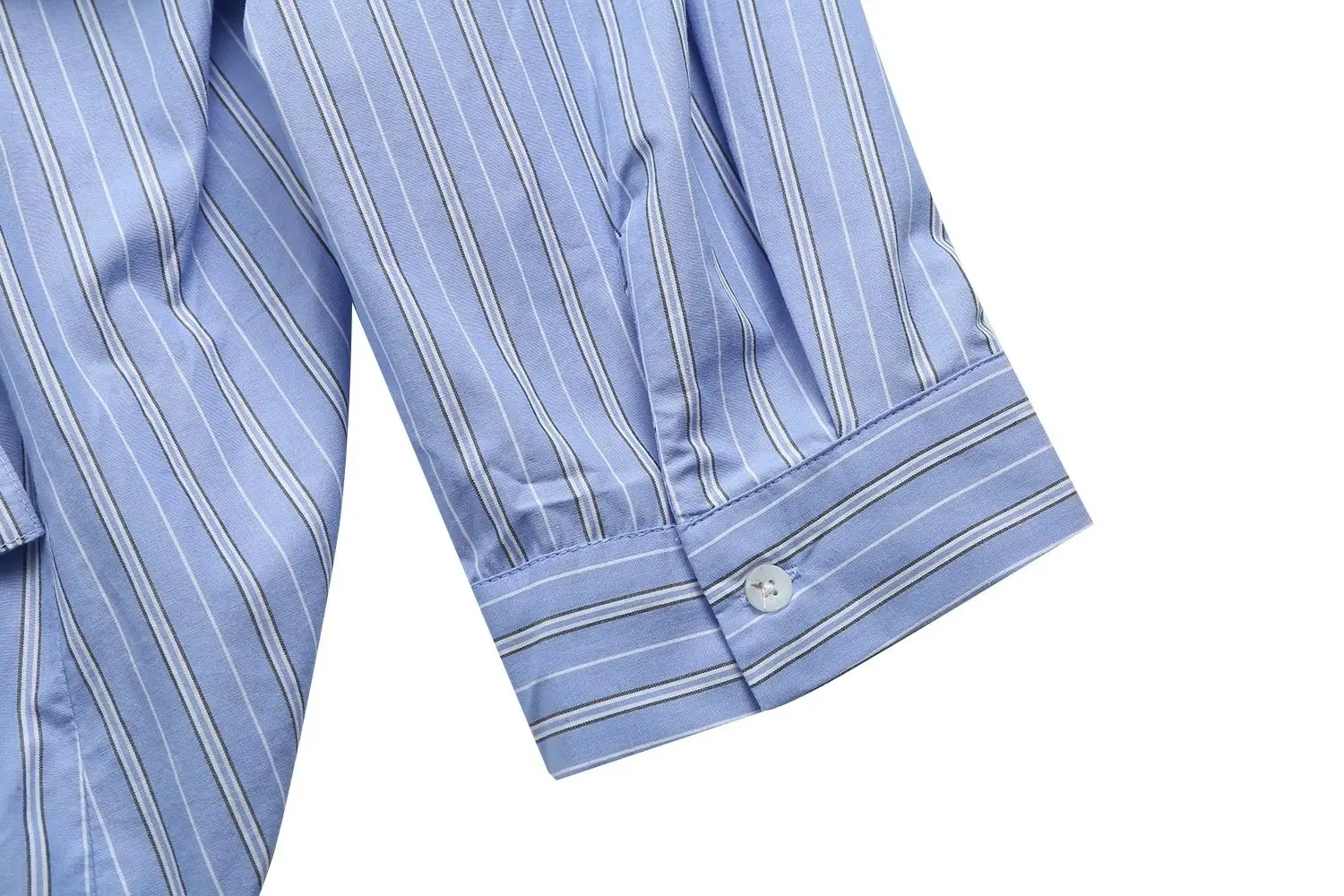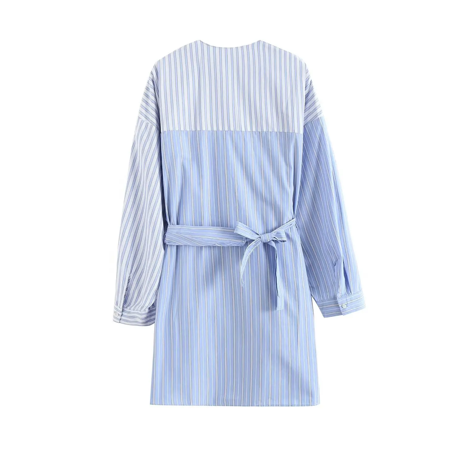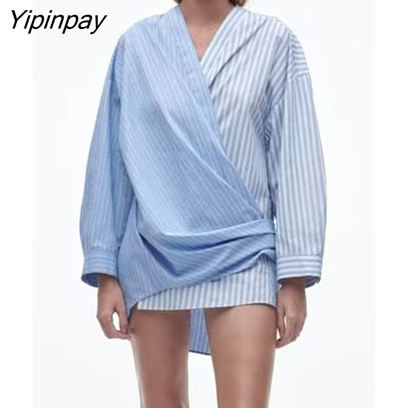 Yipinpay Women Asymmetrical Striped Blouses Shirt Spring Causal V-Neck Long Sleeved Patchwork Tops With Lace Fashion T-Shirts