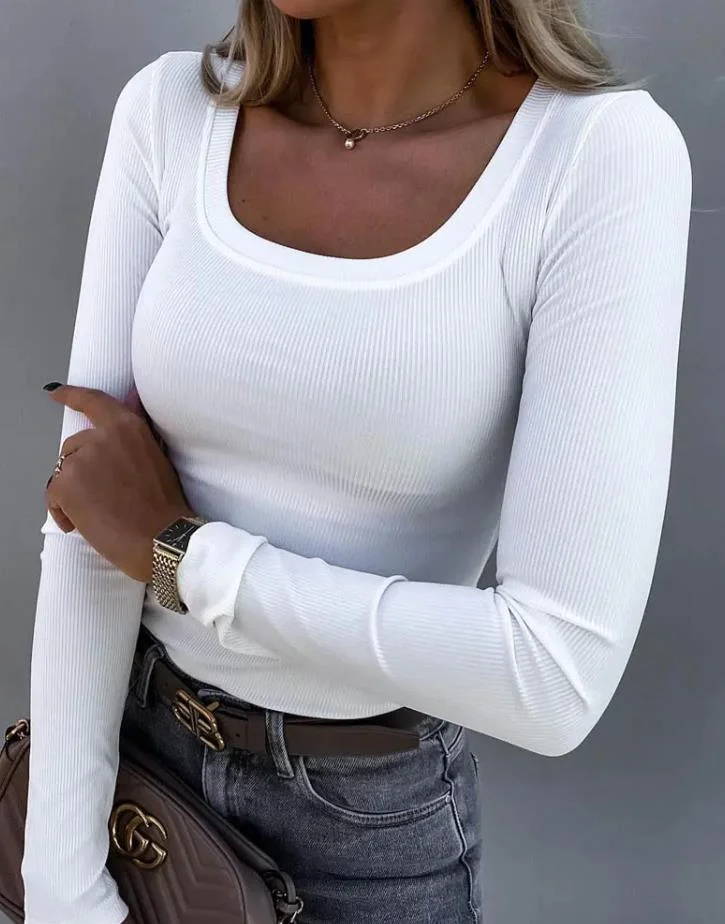 Yipinpay Women Long Shirt Spring Summer U-Neck Tie Dye Print Ribbed Top Female New Fashion Tops