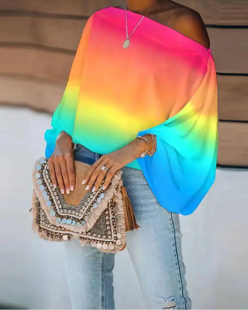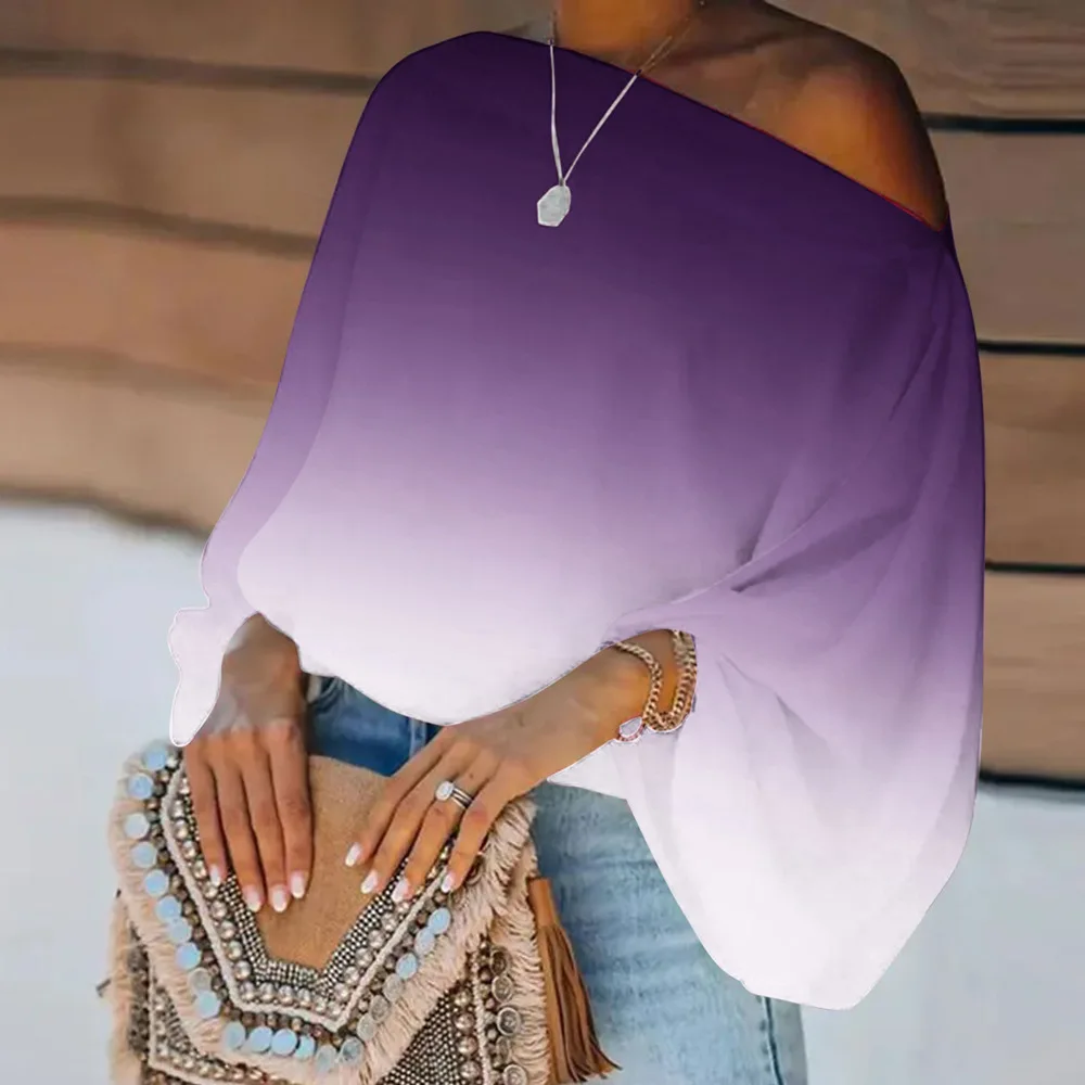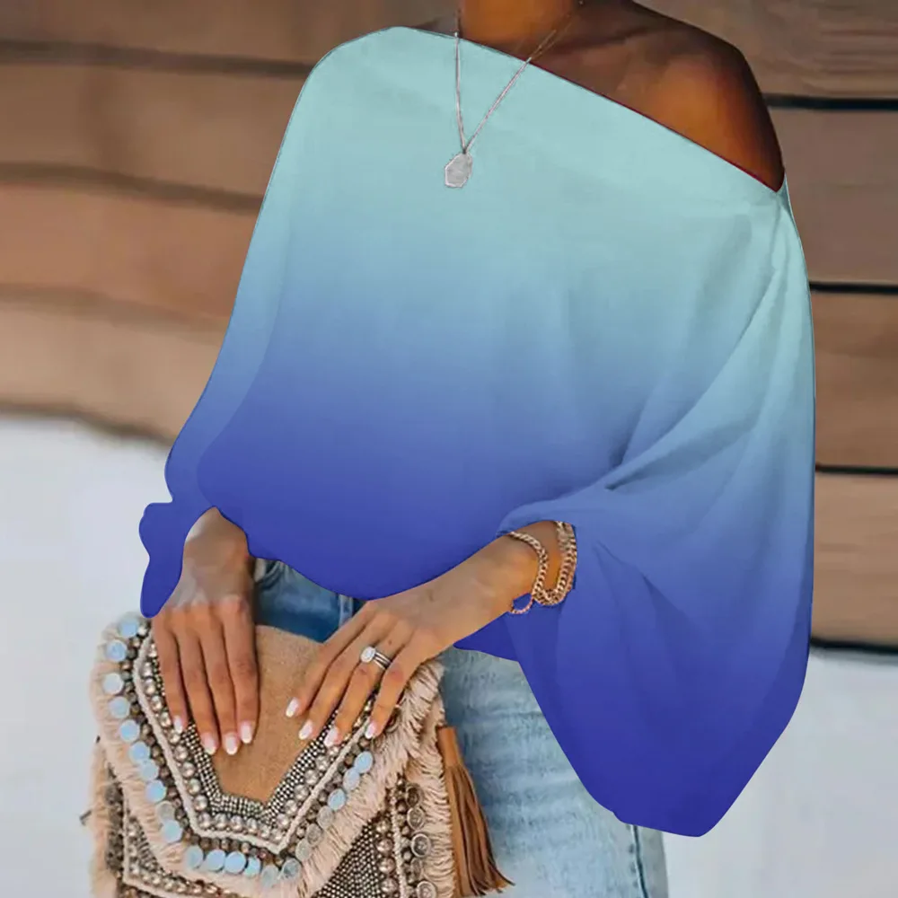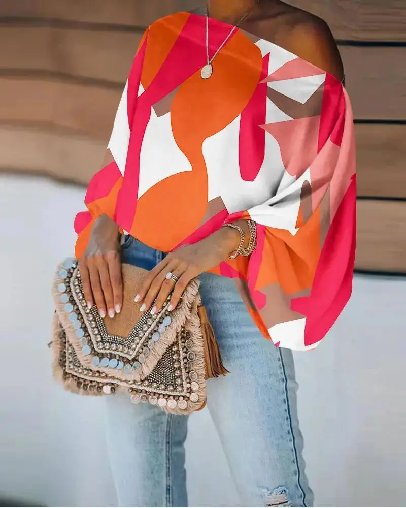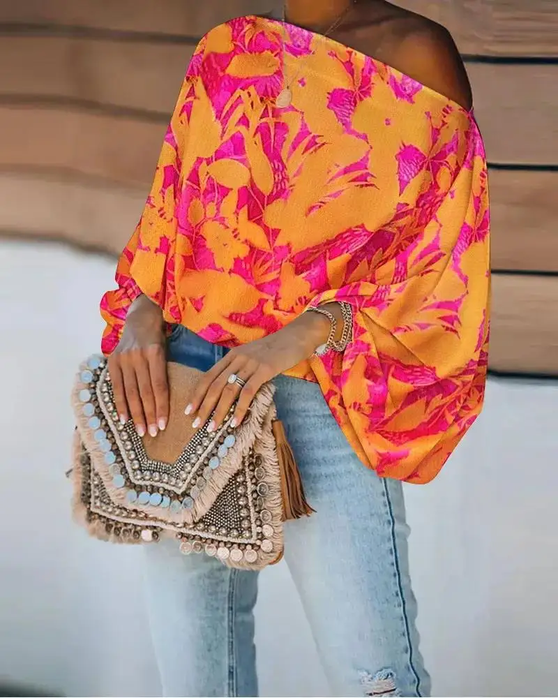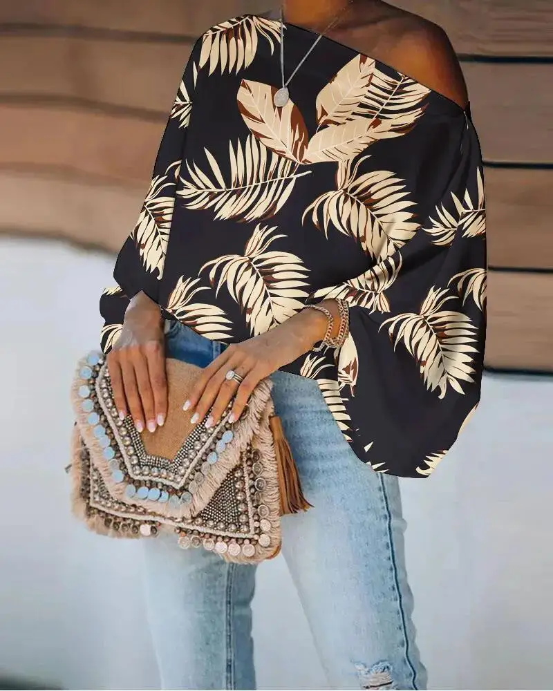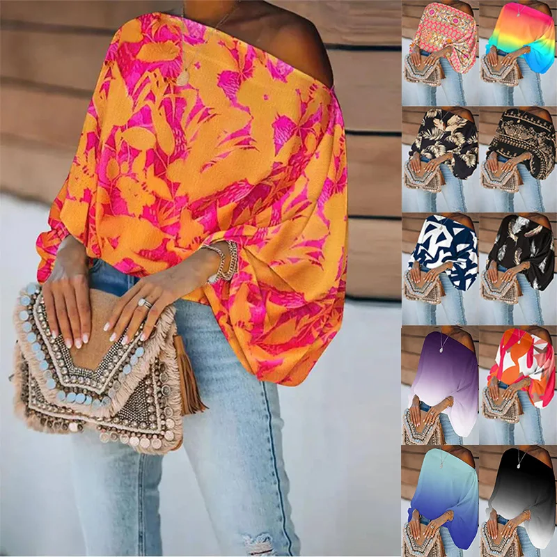 Yipinpay Women Off Shoulder Blouse Spring New Long Sleeve Office Shirts Tops Summer Fashion Boho Print Loose White Pullover Shirt