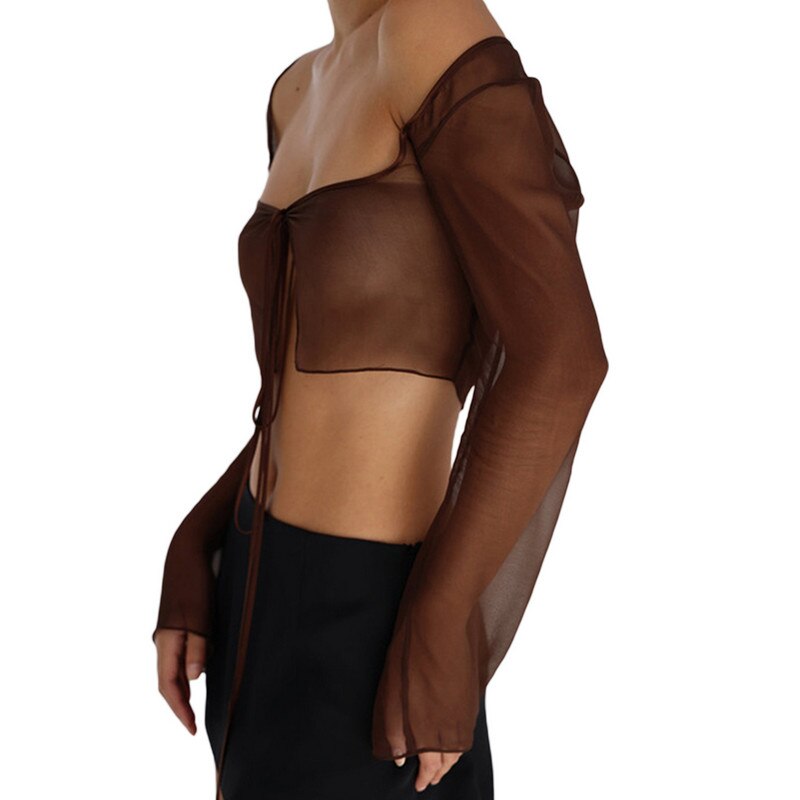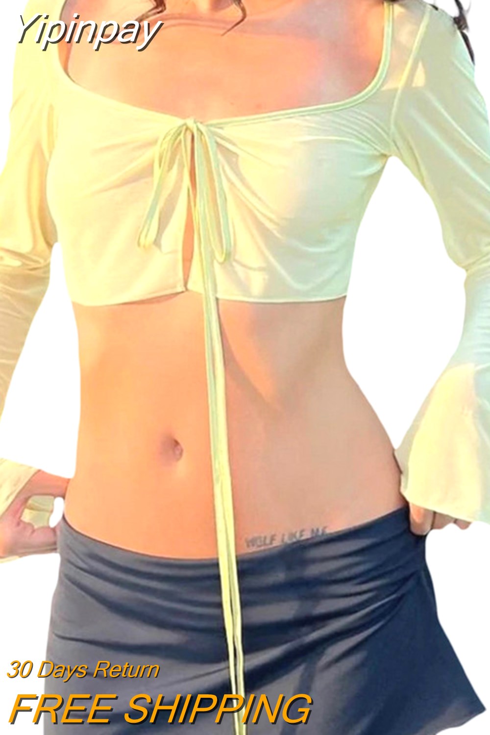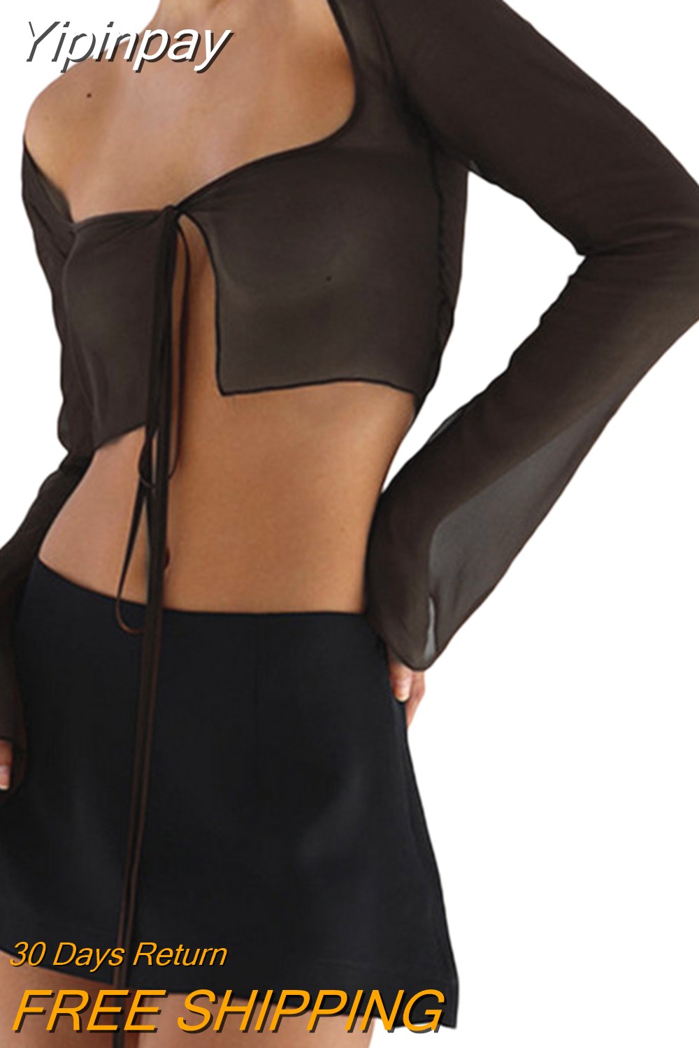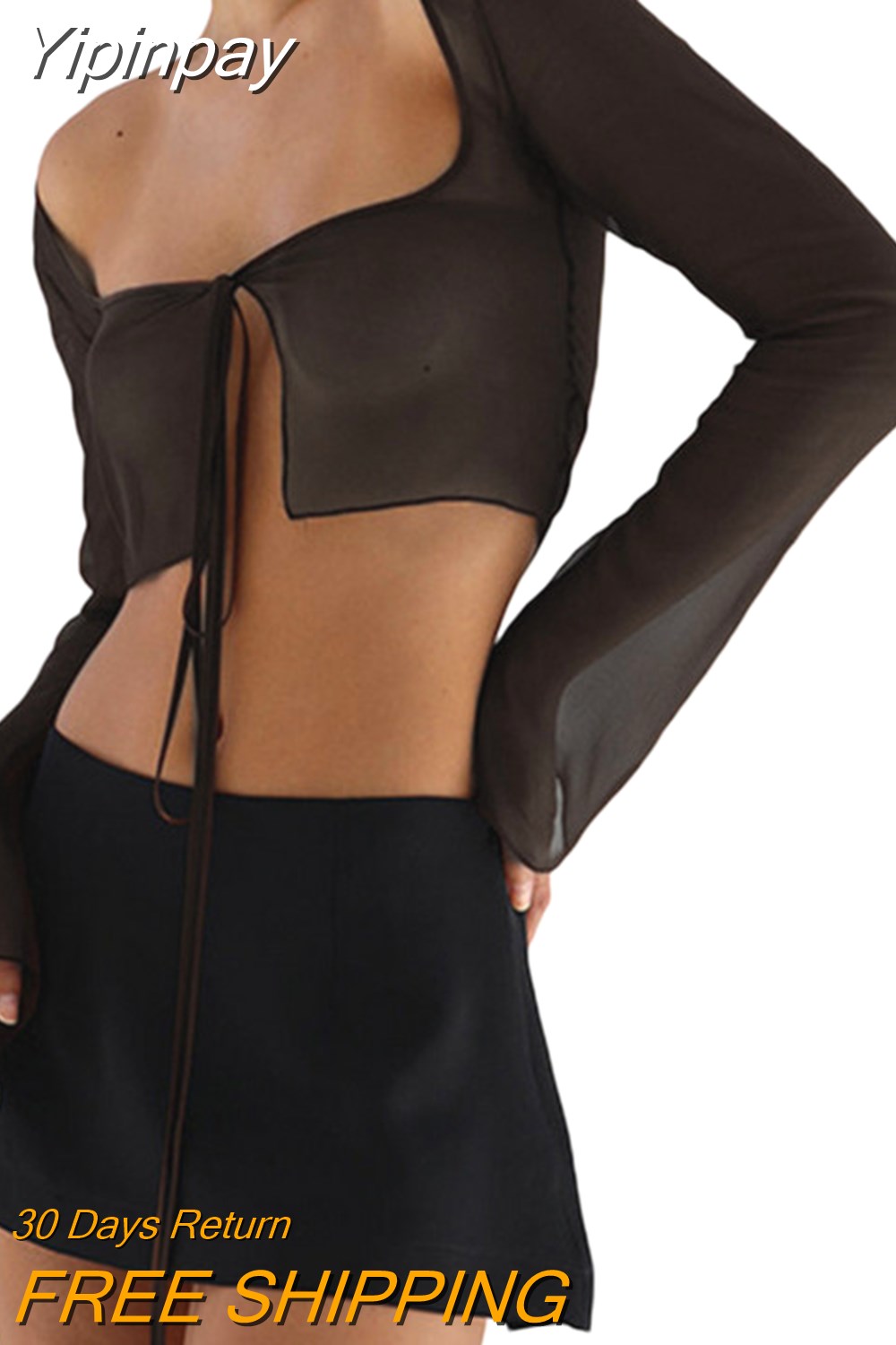Yipinpay Women T-shirts Autumn Winter 2023 Sexy Mesh Crop Top Clothing Harajuku y2k Fairy Grunge Long Sleeve Top Streetwear Club Wear
