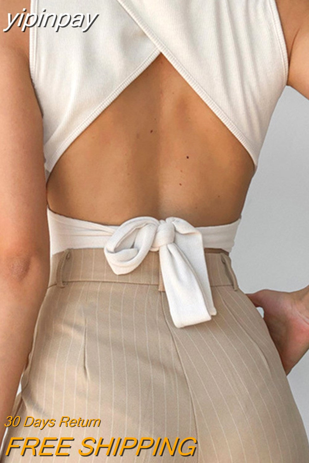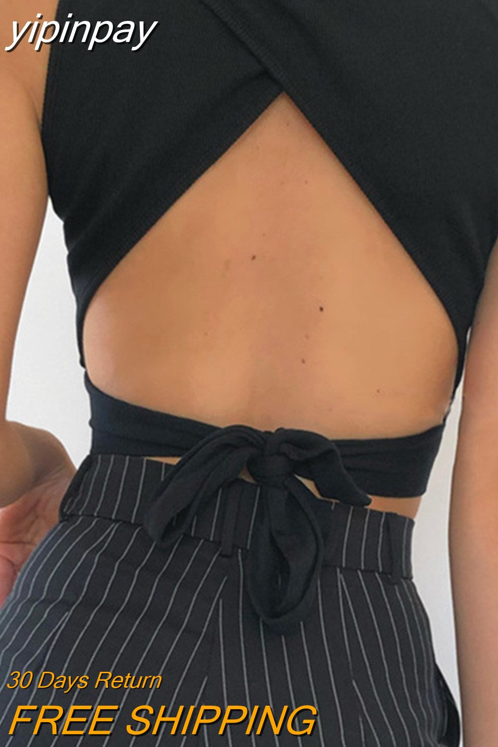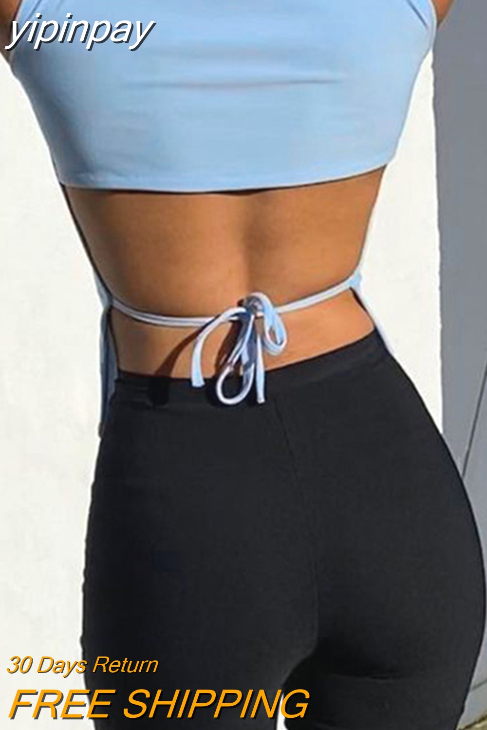 yipinpay Women Y2K Lace Up Backless Tank Top Solid Knitted T-shirts Tops Sexy Crop Top Night Club Outfits 2023 Streetwear Basic Tanks