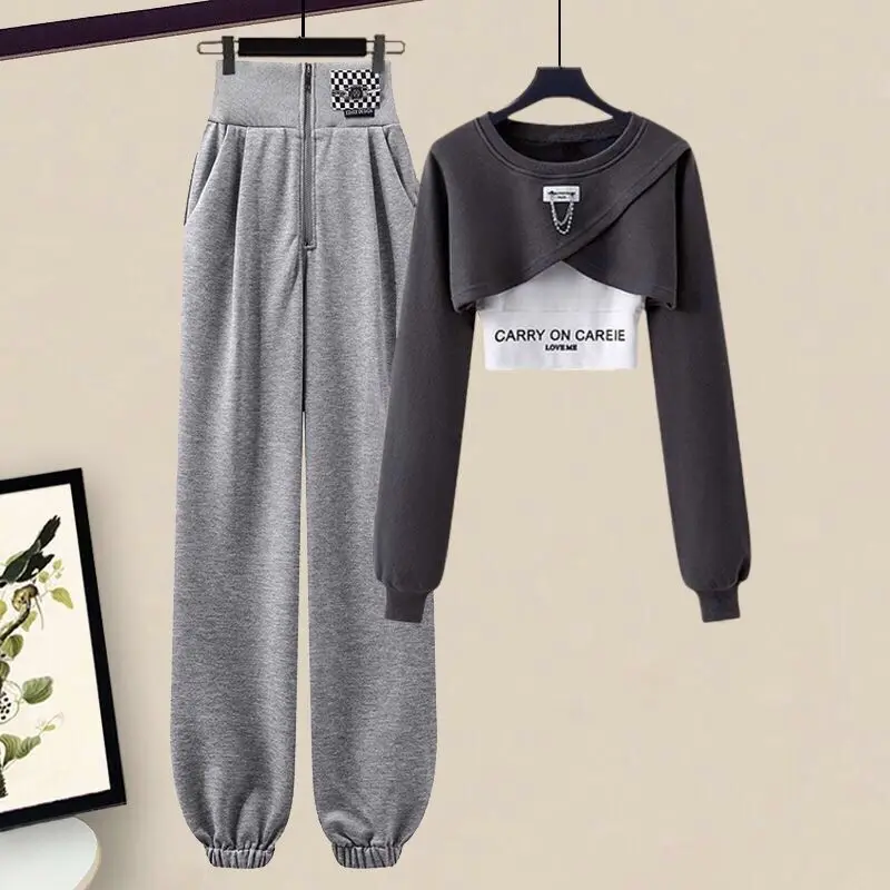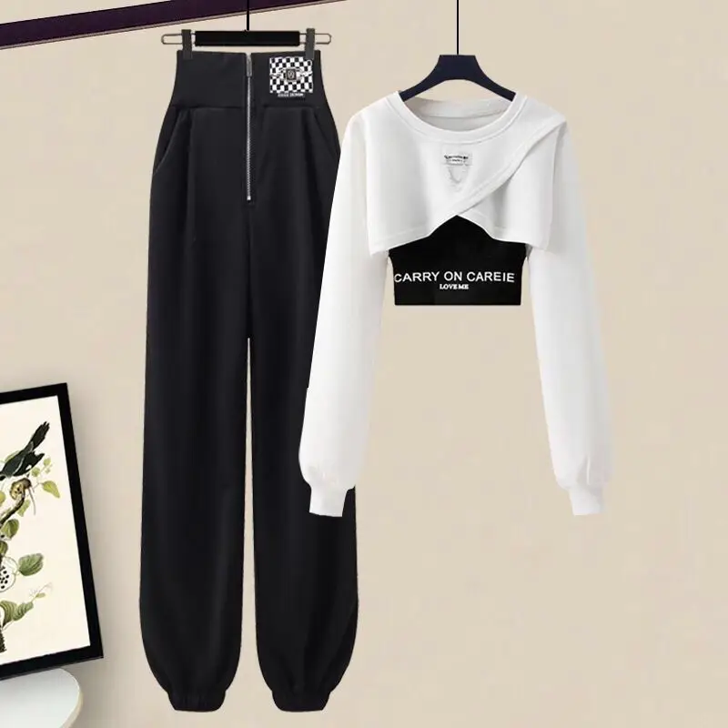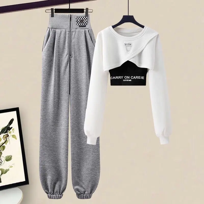 Yipinpay Women's Autumn Winter Tracksuit Set 2024 New Fashion Short Sweater Top + Vest + PantsThree-piece Korean Elegant Sportswear Suit