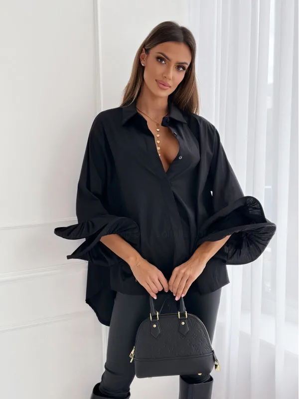 Yipinpay Women's Boho White Blouses Fall Spring Casual Loose Simple Lapel Flare Sleeve Shirts Tops Fashion Black Shirts Streetwear Women