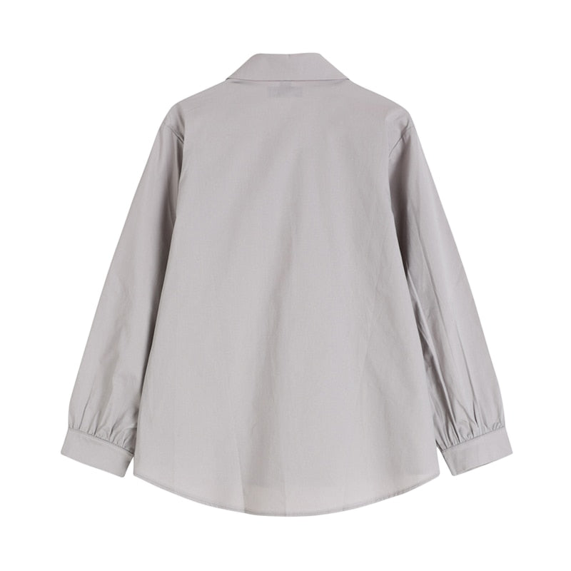 yipinpay Women's Clothing Shirt Versatile Loose Grey Long Sleeved Printed Bear Pattern Fashion Tops Casual Button Ladies Baggy Blouse