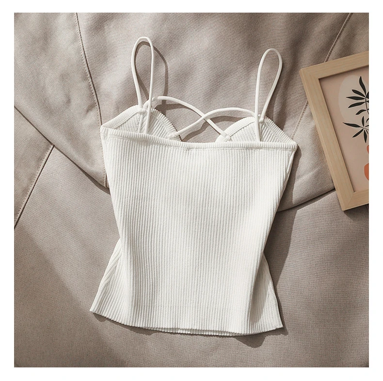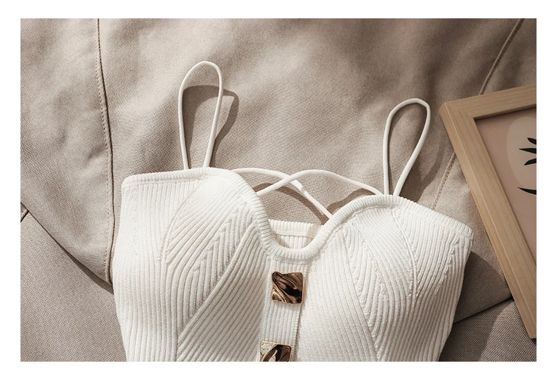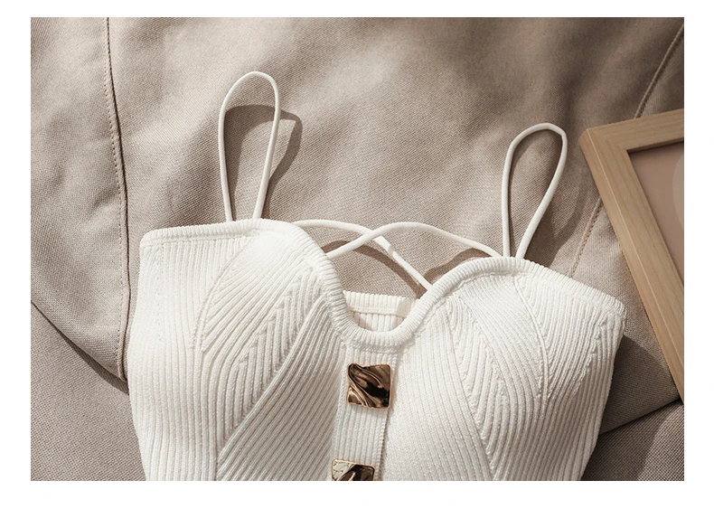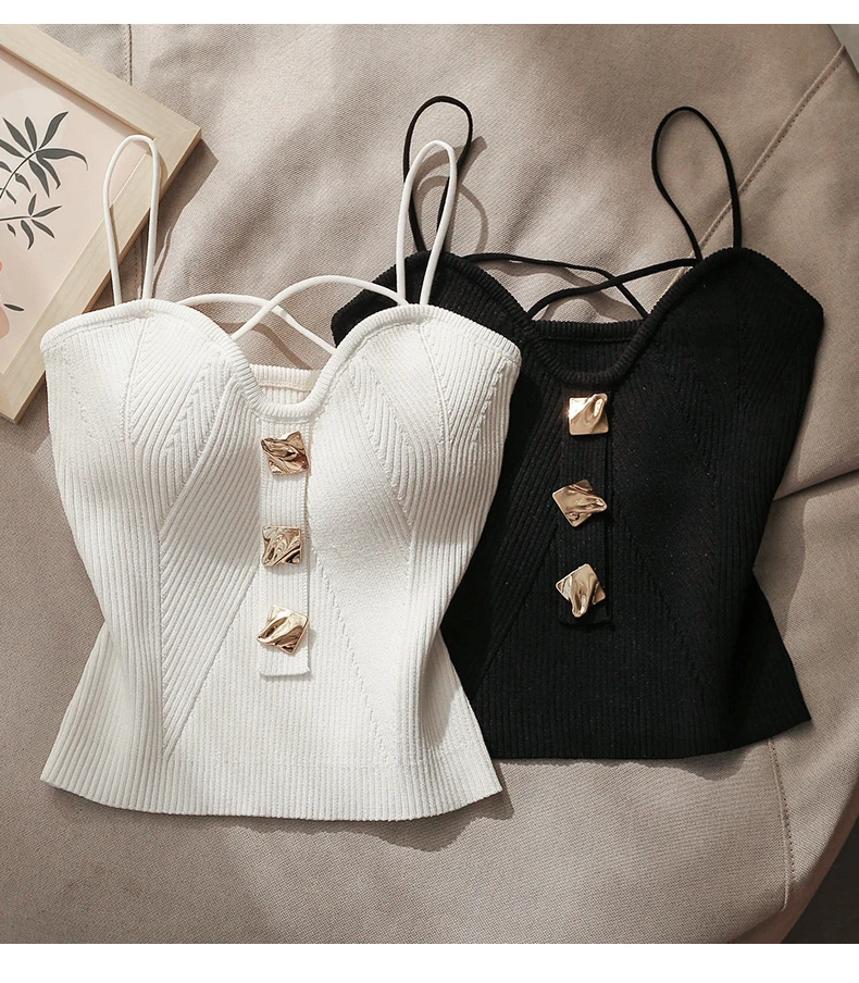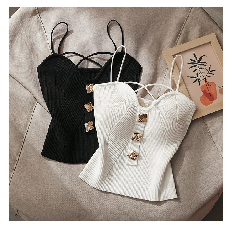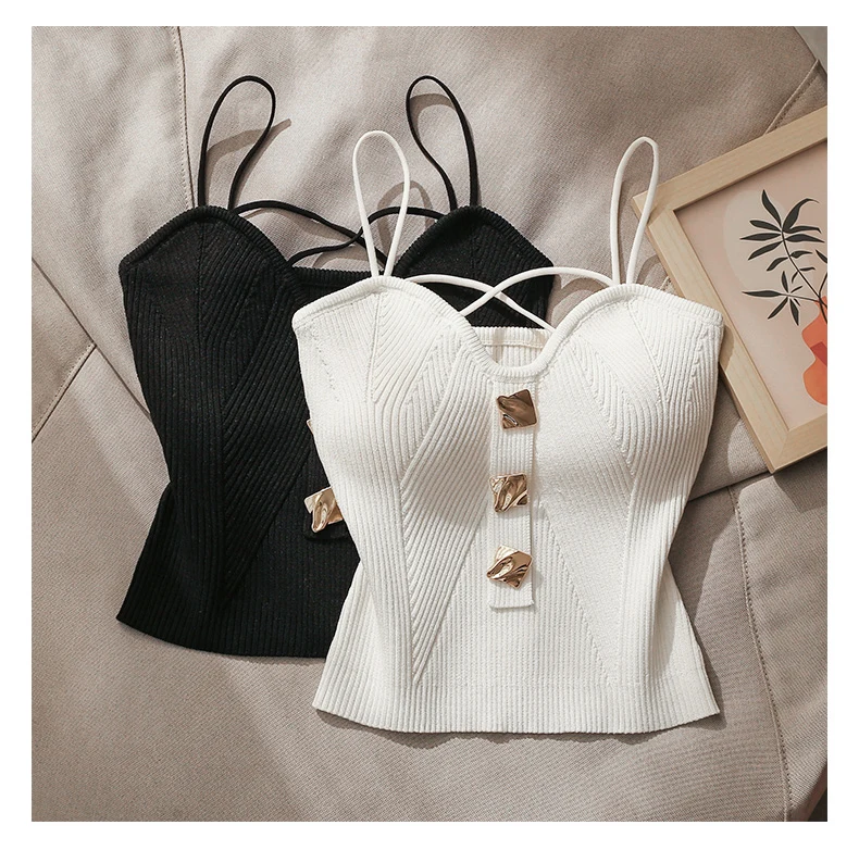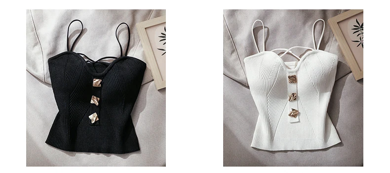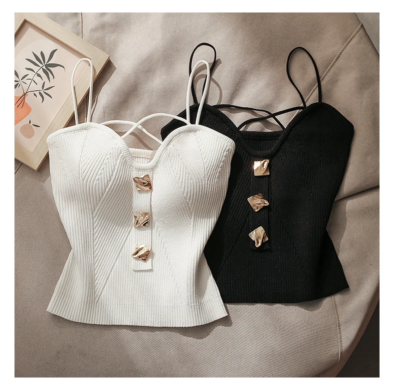 Yipinpay Women's Sexy Knitted Tops Summer Vest French Style Cross-knit Suspender Female White Black Camisole Tank Top Spaghetti Strap
