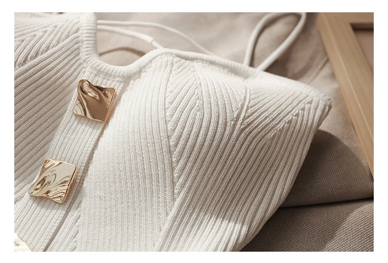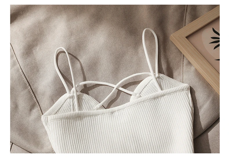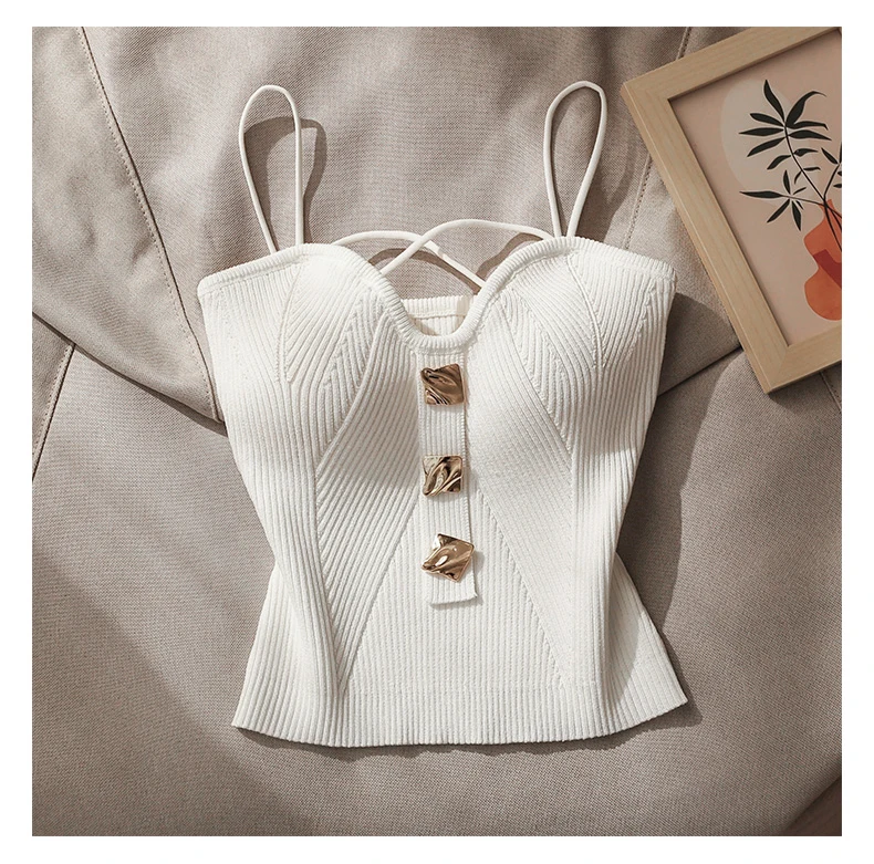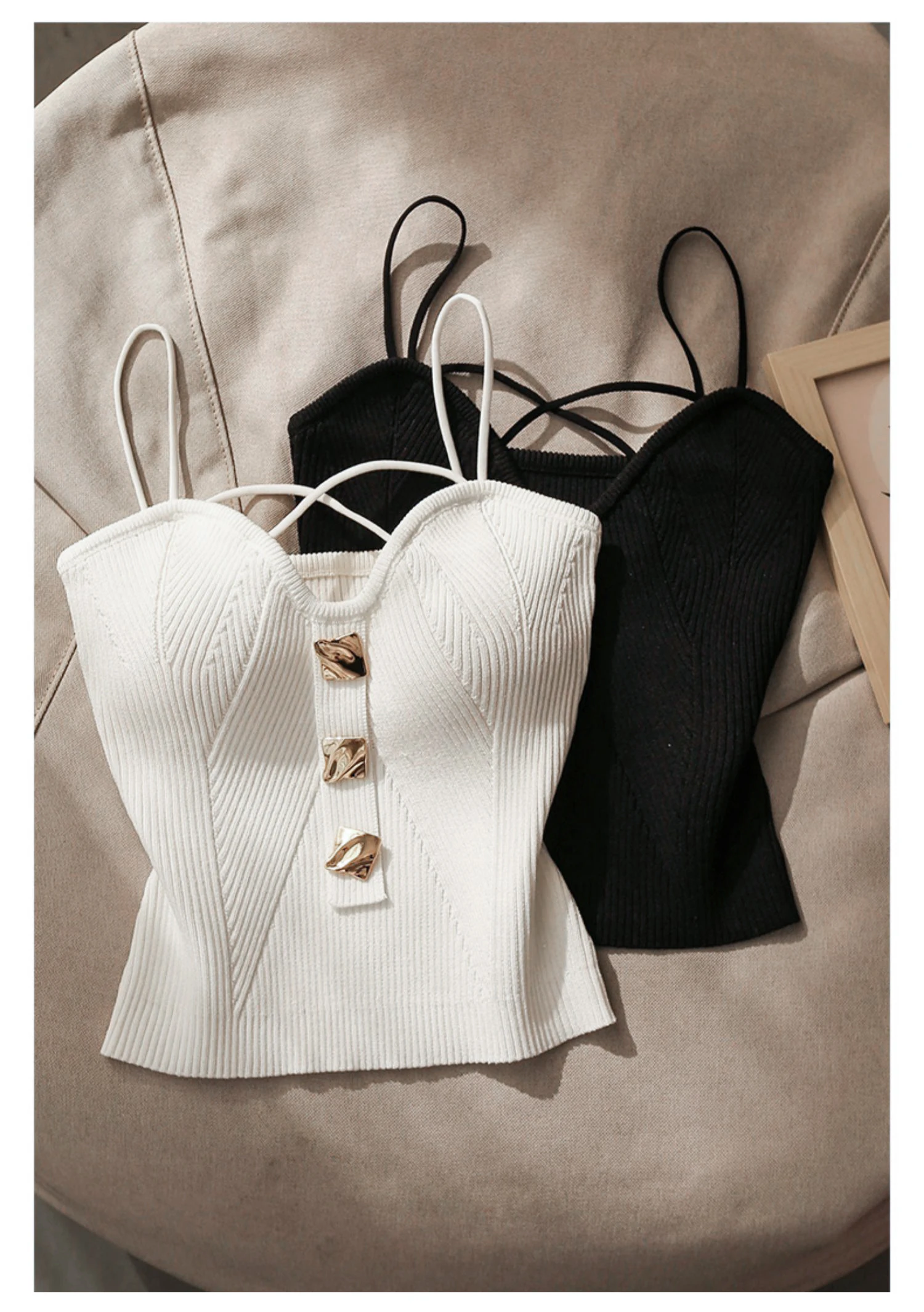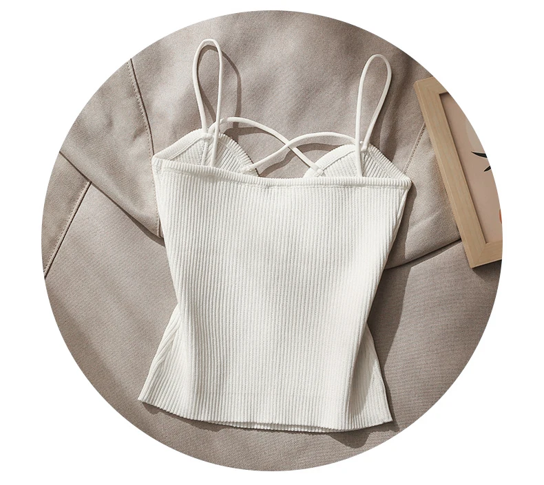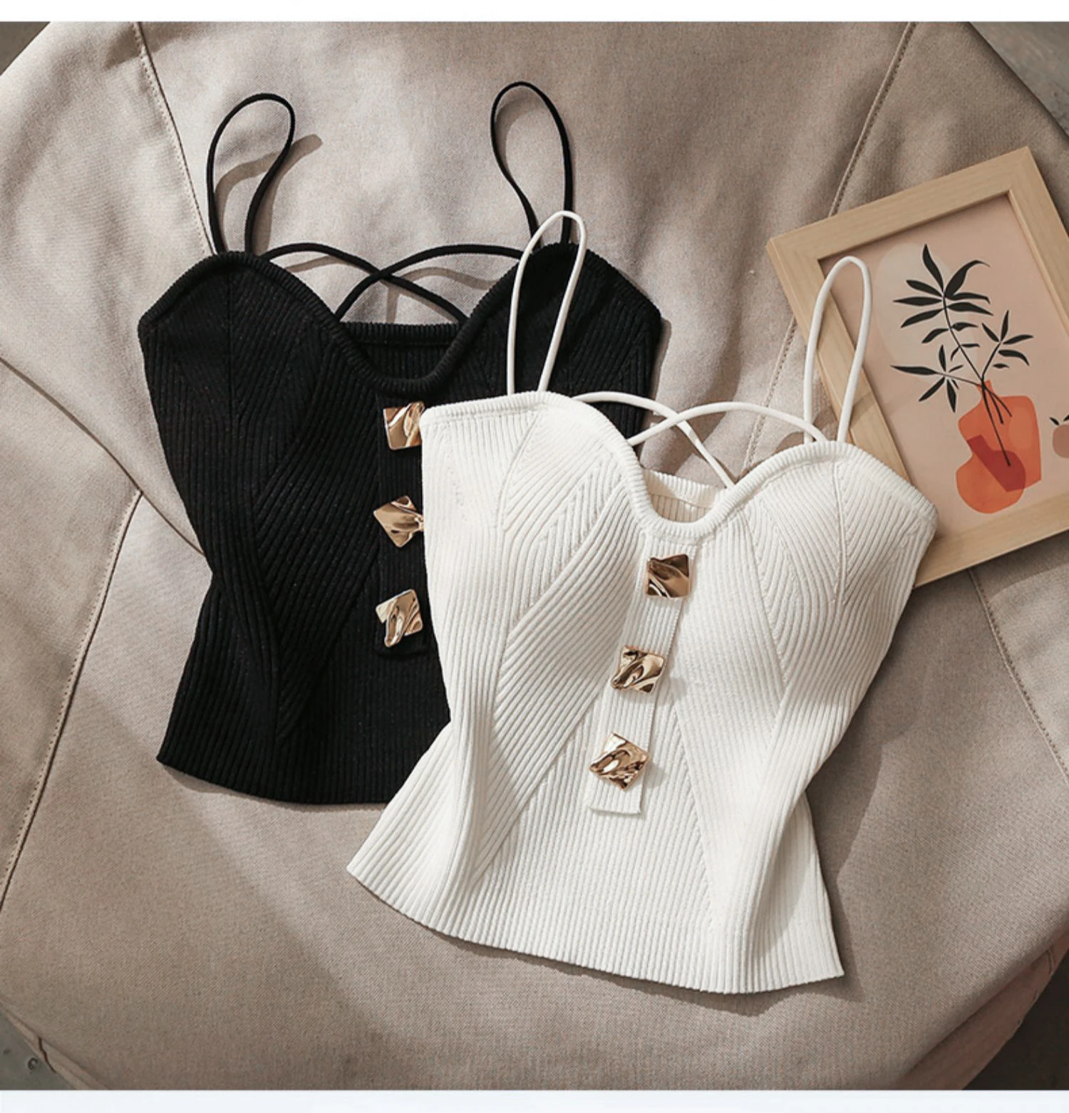 Yipinpay Women's Sexy Knitted Tops Summer Vest French Style Cross-knit Suspender Female White Black Camisole Tank Top Spaghetti Strap