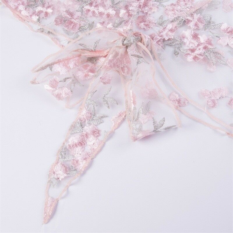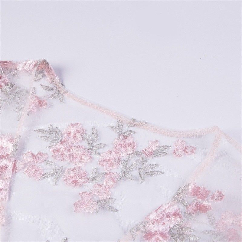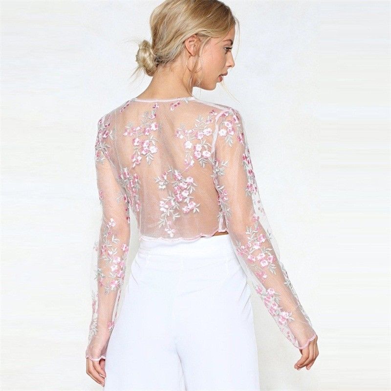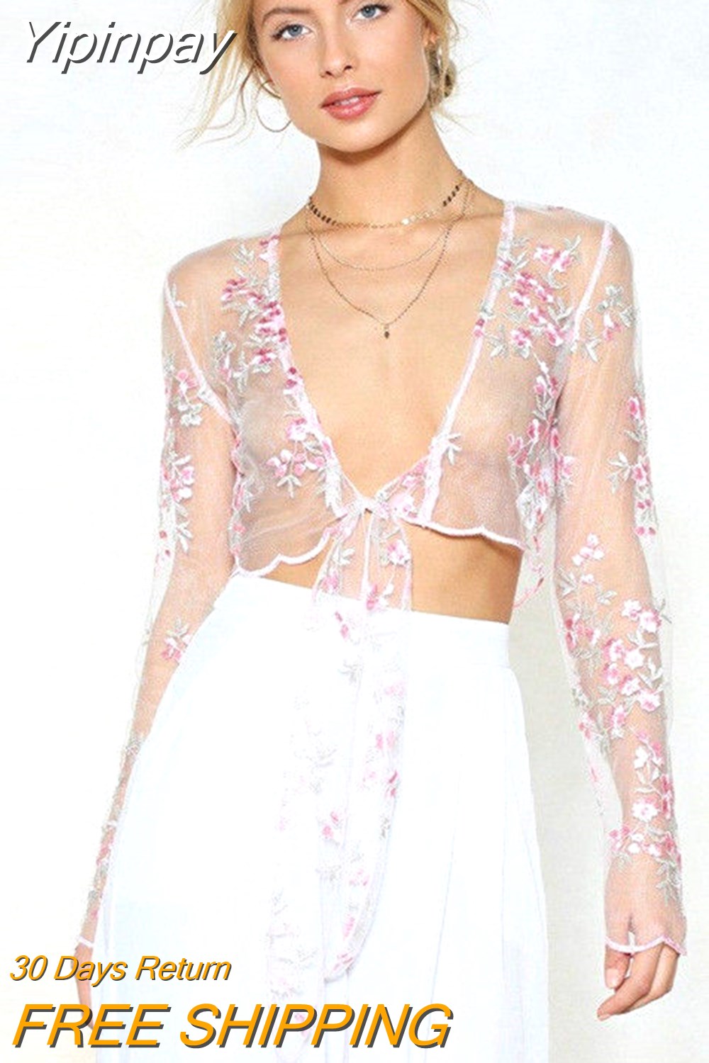 Yipinpay Womens Summer Long Sleeve Floral Transparent Mesh Sheer Embroidered Swimsuit See-through Hollow Out Crop Tops Cover Up Beachwear
