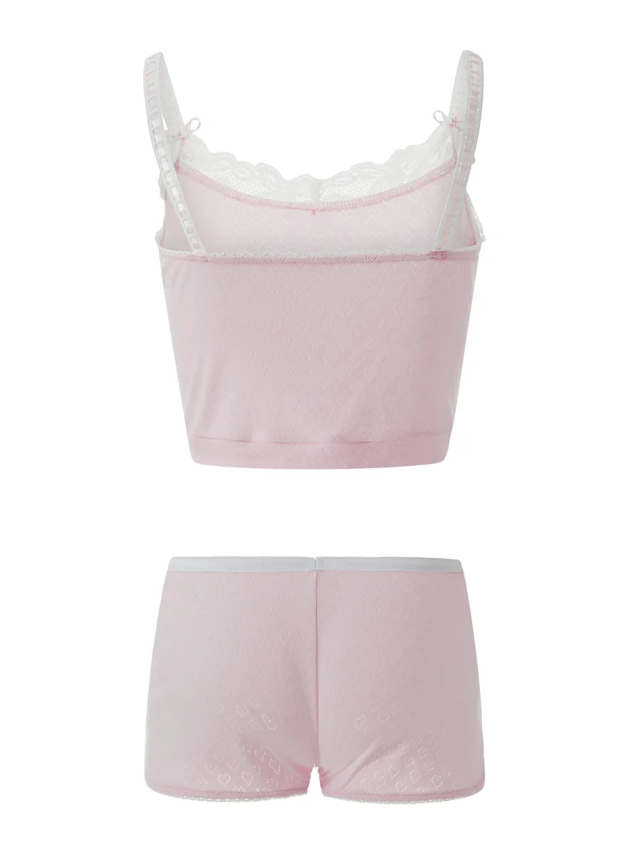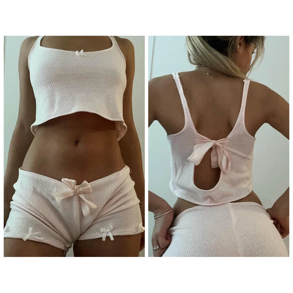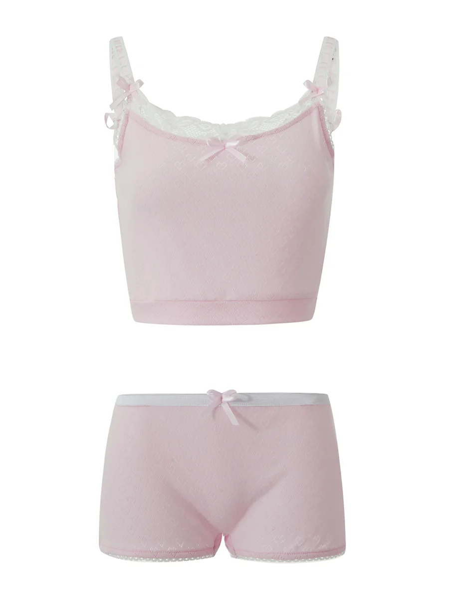 Yipinpay Womens Y2K Chic Summer Outfits Lace Trim Spaghetti Strap Sleeveless Crops Tops and Casual Low Waist Shorts Pjs Set