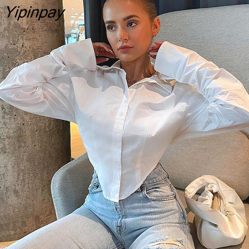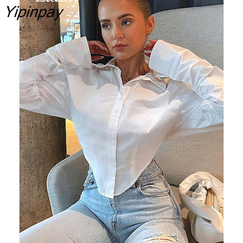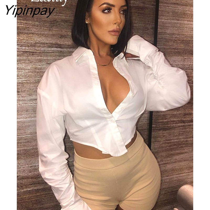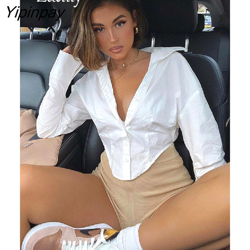 Yipinpay Y2K New In Long Sleeve Solid Women White Shirt Sexy Folds Button Up Woman Corp Tops 2023 Spring Female Blouse Clothing