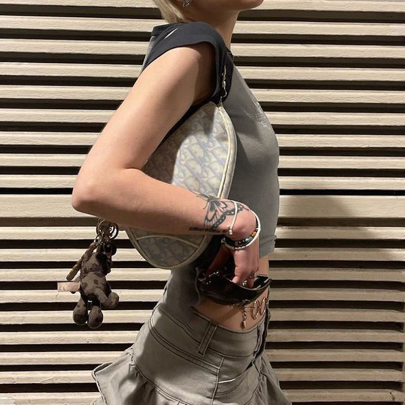 2025 Summer Hot Girls Hipster Street Retro Round Collar Shoulder Collision Wing Printed Short-Sleeved T-Shirt