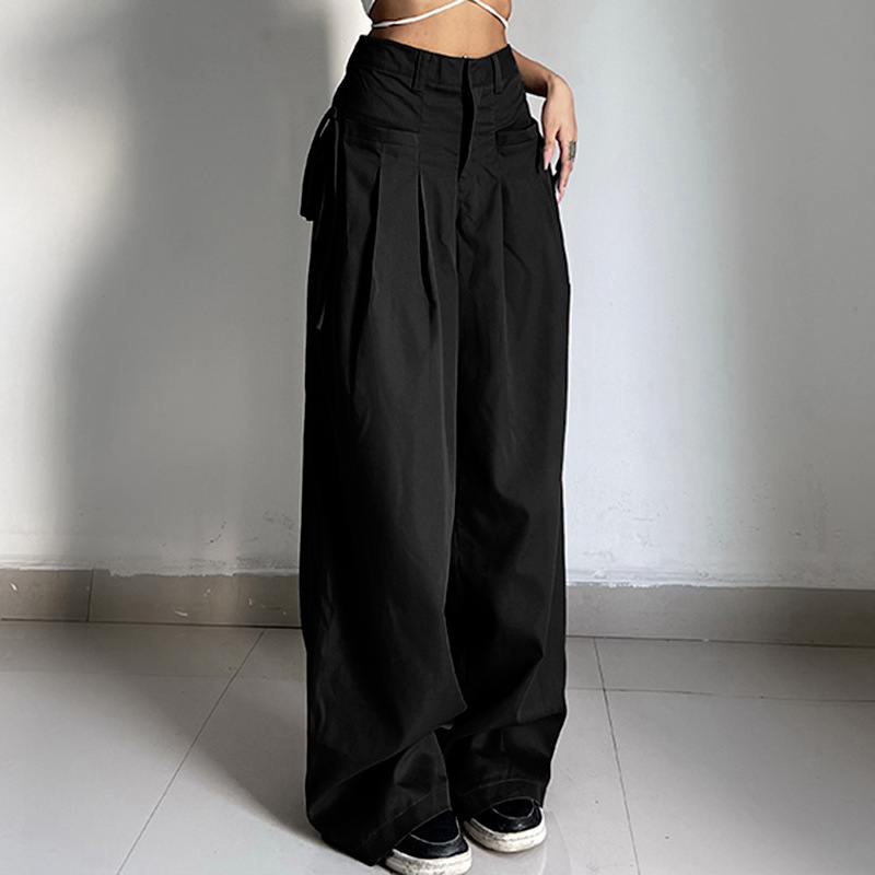 2025 Summer New Spice Girls Fashion Retro Street Loose Low-Waisted Solid Color Woven Trousers