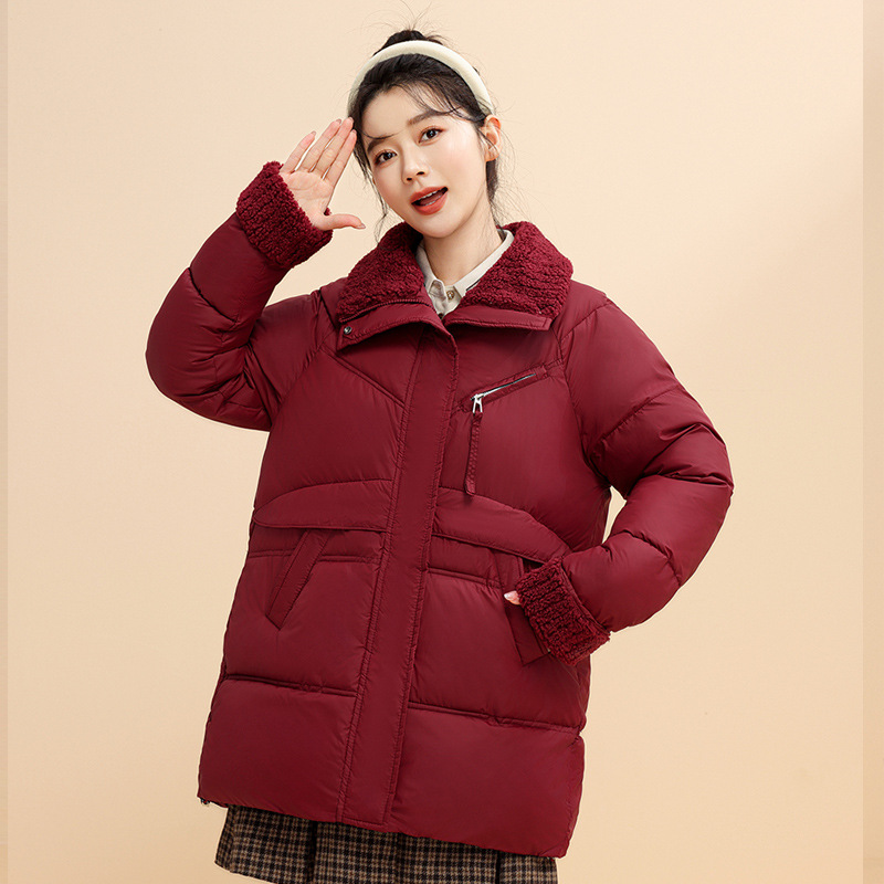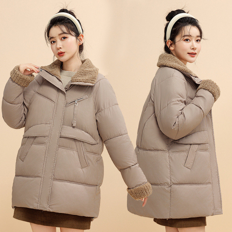 Down Cotton Jacket Female Winter 2024 New Loose Lamb Wool Collar Cotton-Padded Jacket And Thick Coat