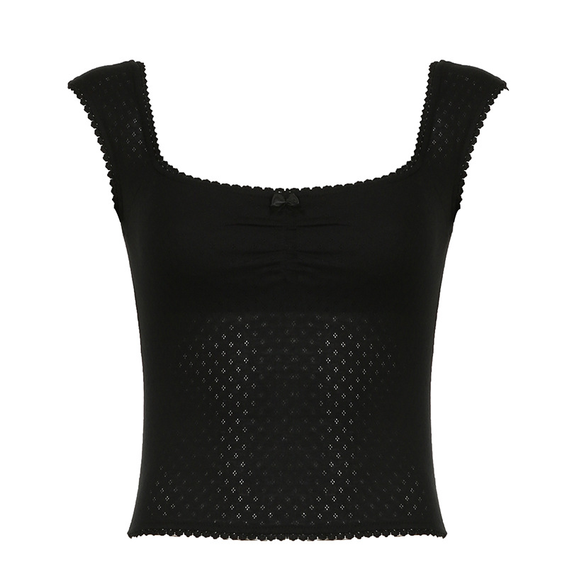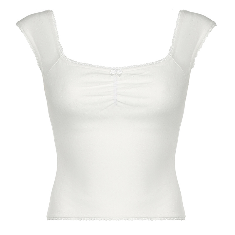 Gentle Style Small Lace Pleated Square Collar Short-Sleeved T-Shirt Ins Girls Fresh Wear Bare-Back Blouse 2024