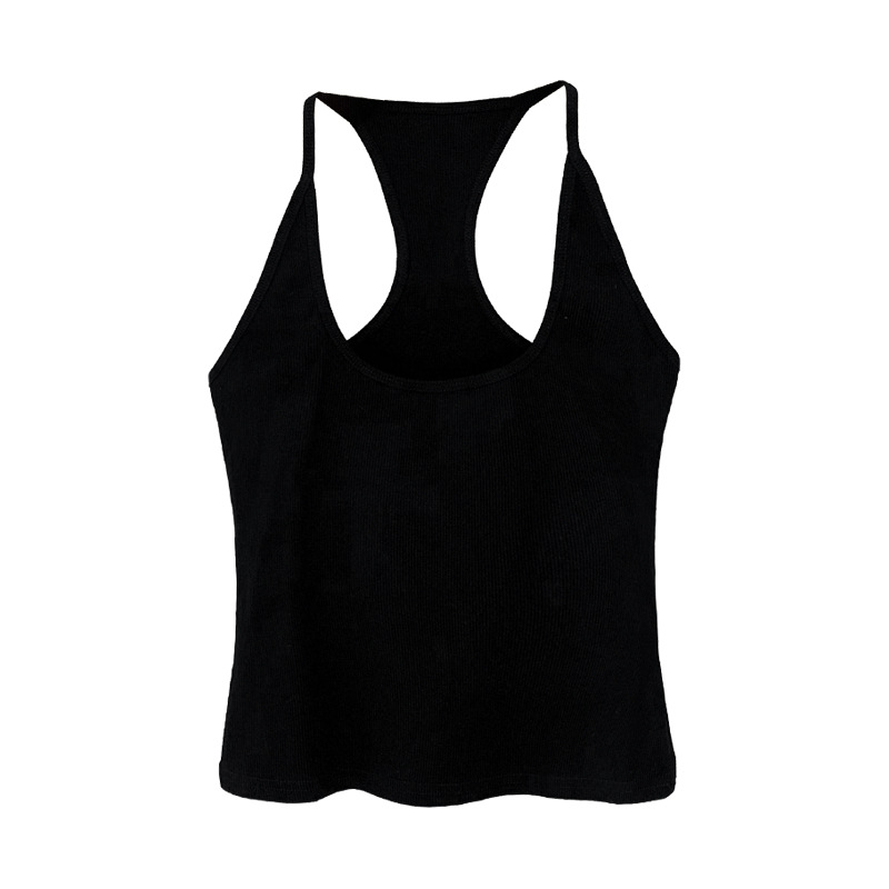 Hot Girl Style Black I-Shaped U-Shaped Collar With Sling Vest Outside Wearing Short Slim And Slim Blouse Woman