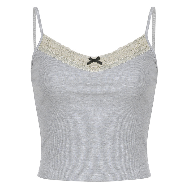 New Spice Girl Style Fashion Knitted Lace Spliced Round Collar Navel Vest In Summer 2025