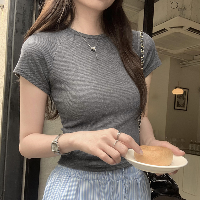 Retro Spice Girl Shoulder Short-Sleeved T-Shirt A New Summer Style Short Blouse With Solid Color And Slim Figure