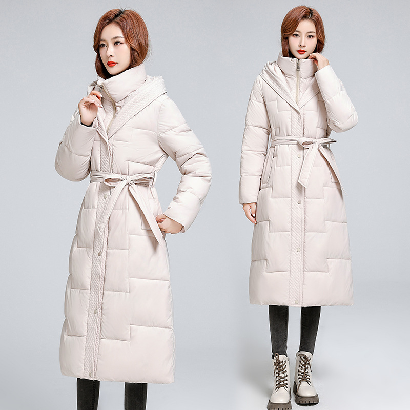 Size 2024 Winter Women Thickened Over The Knee Long Cotton-Padded Clothes Female Waist Slim Show Thin Senior Sense Coat