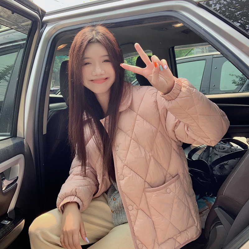 Small Fragrant Wind Diamond Lapel Cotton Coat Female Layer Sense Short Small Loose Lapel Cotton Jacket With Cotton Coat
