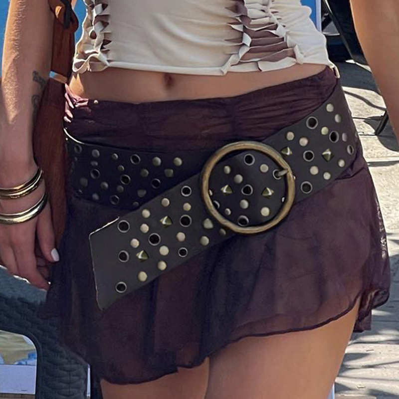 Spicy Girls Fashionable Retro Rivet Ring PU Leather Belt 2024 Sexy Waist Elastic Waist Seal Accessories Belt