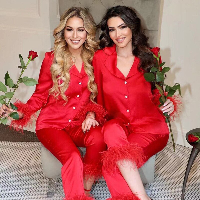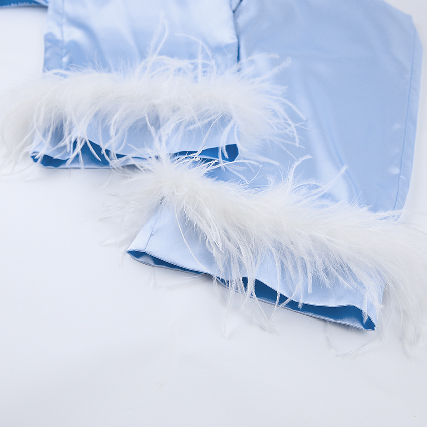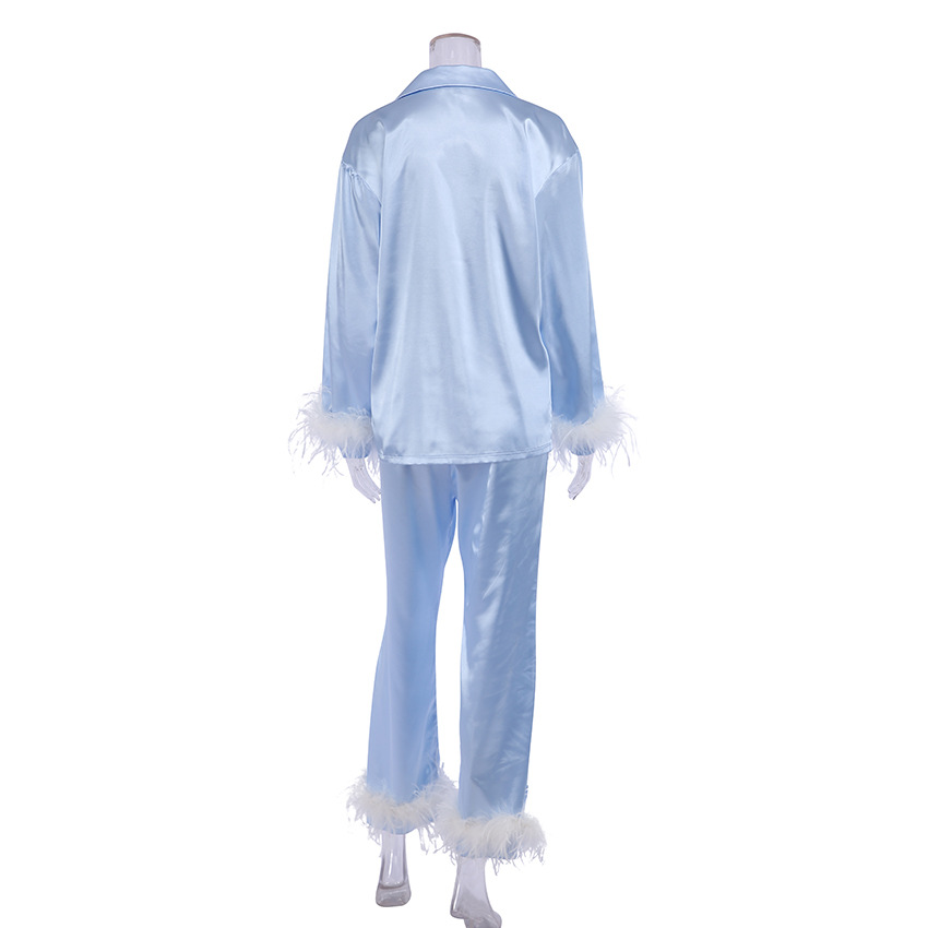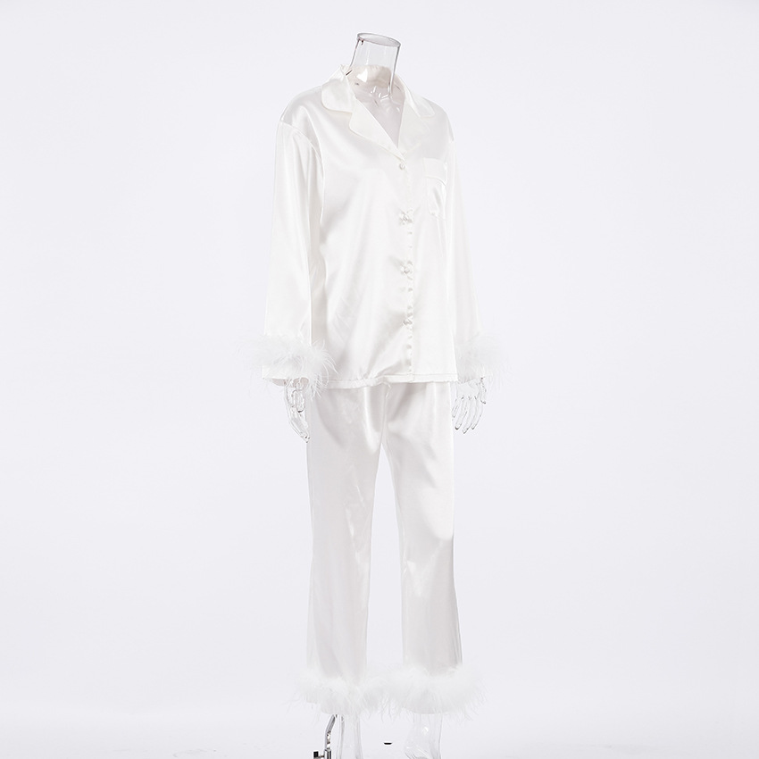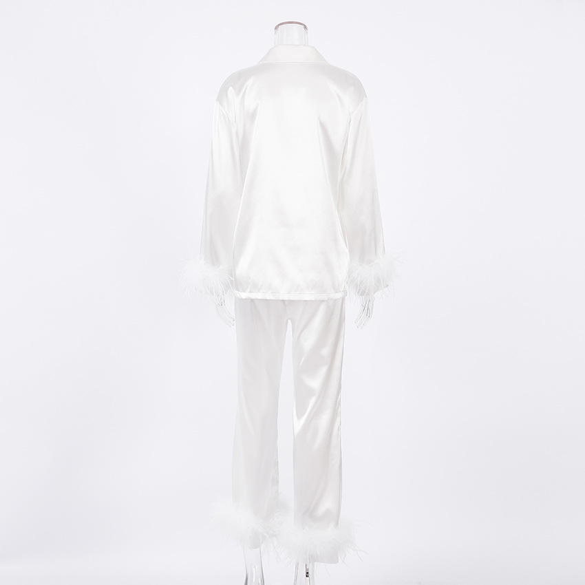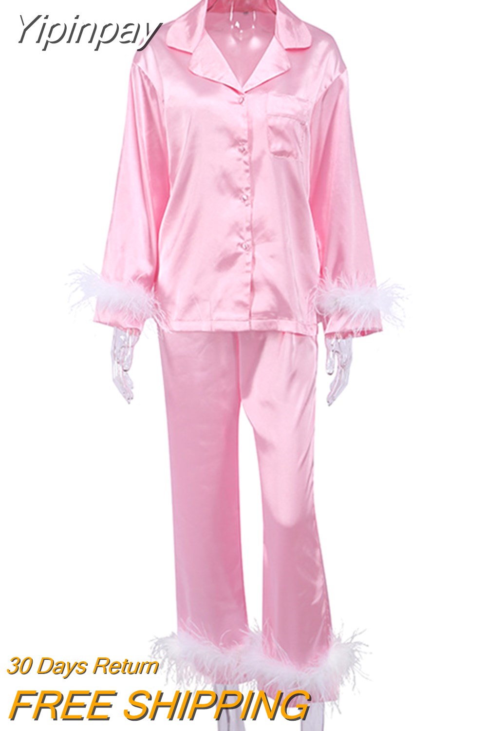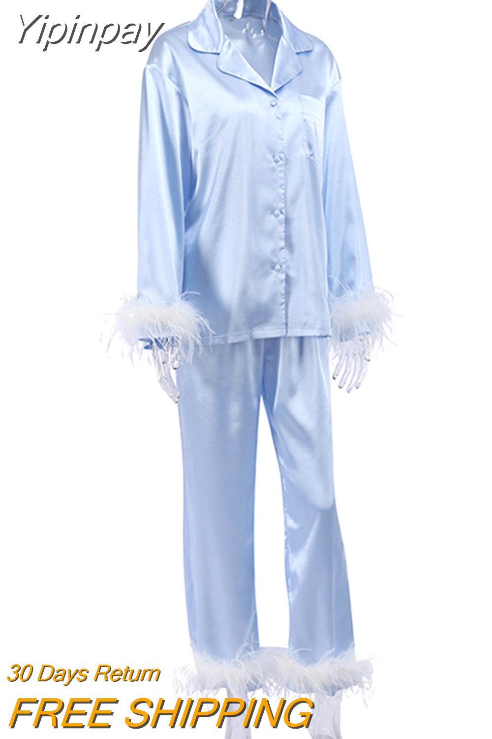 Yipinpay 2 Pcs Women Solid Color Outfits Adults Furry Long Sleeve Tailored Collar Blazer + Straight-Leg Suit Pants Street Style