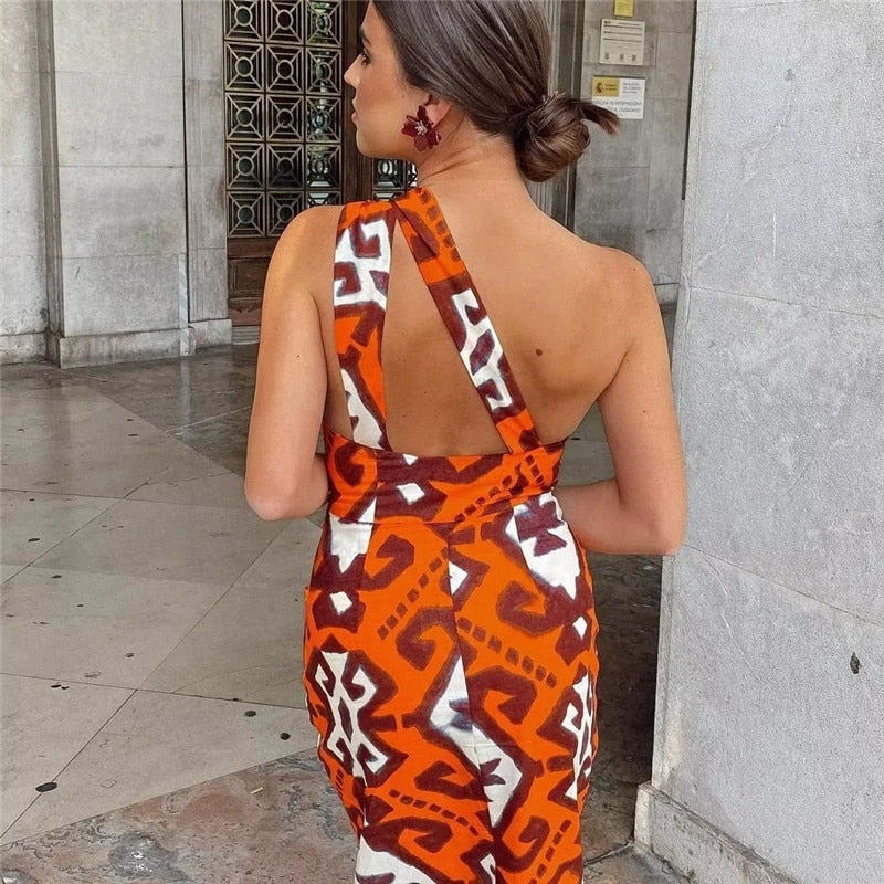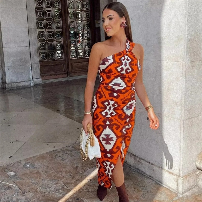 Yipinpay 2023 Asymmetric Midi Dress Woman Print Off Shoulder Long Dresses For Women Backless Sexy Party Dress Beach Summer Dresses