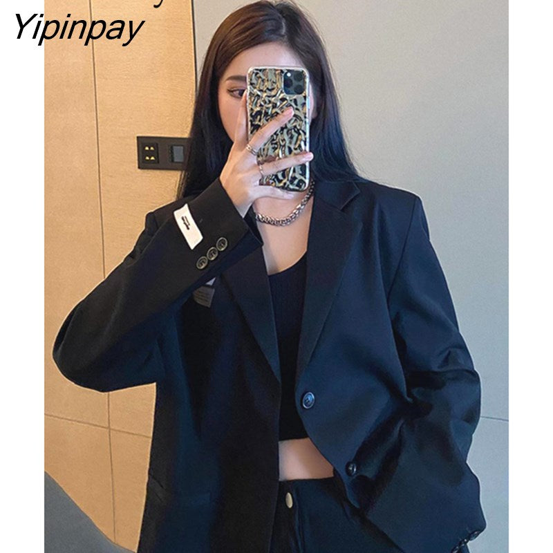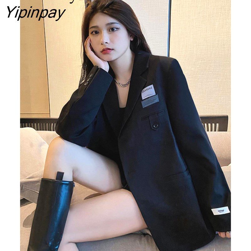 Yipinpay 2023 Autumn Korean Style Long Sleeve Patch Designs Women Blazer Office Lady Suit Blazers Winter Female Loose Clothing