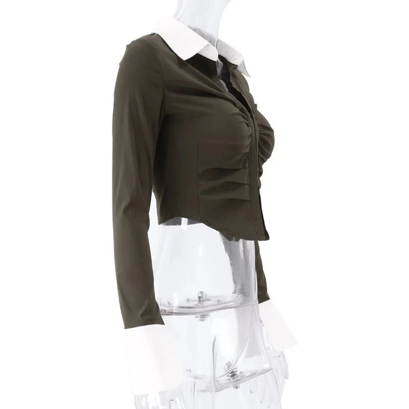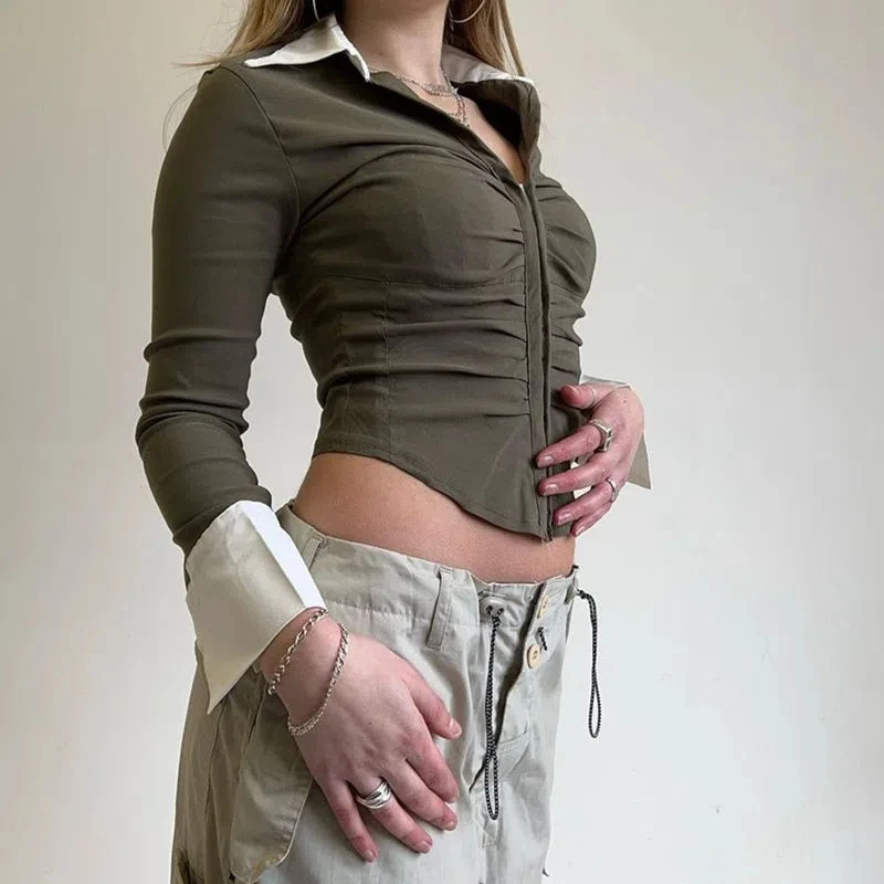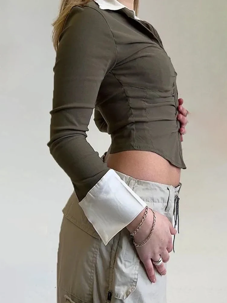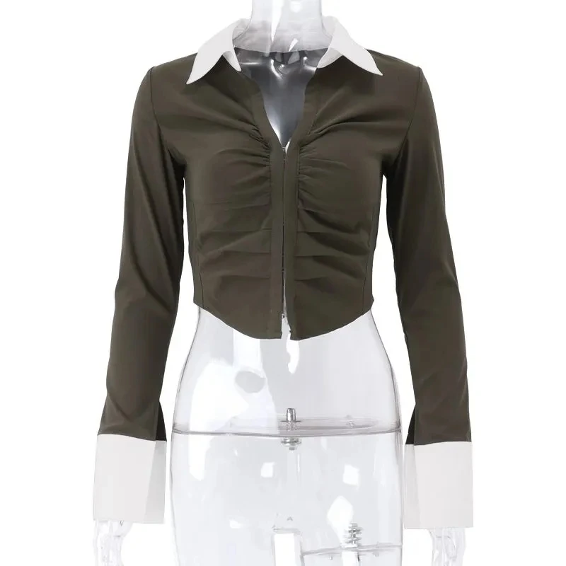 Yipinpay 2023 Autumn Long Sleeve Strecth Shirt Women Sexy Patchwork Slim Ladies Crop Tops Korean Style Female Clothing Blouse