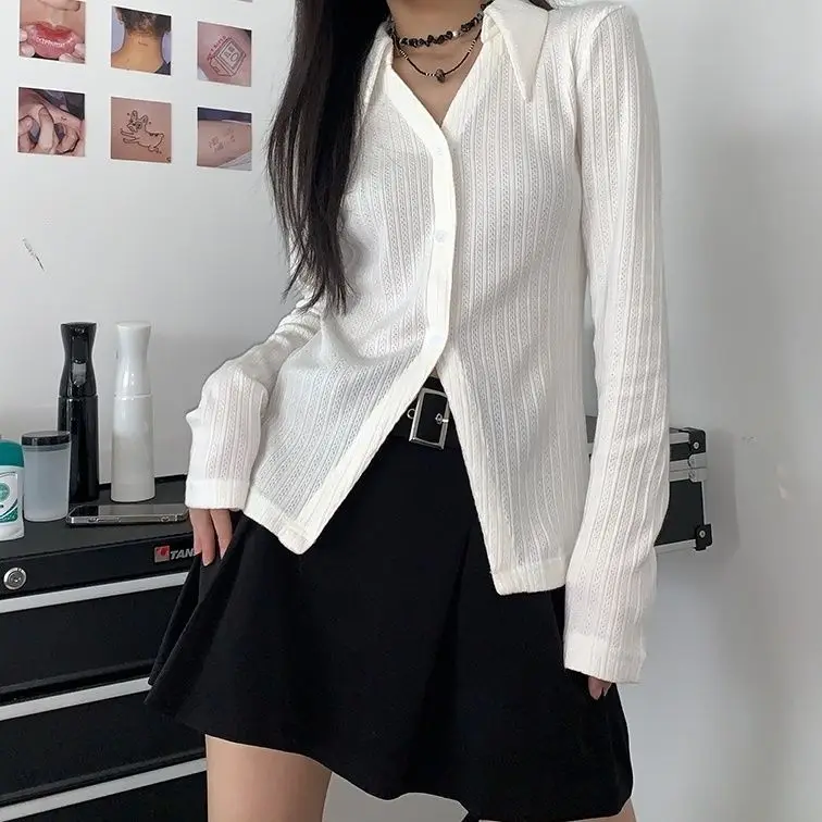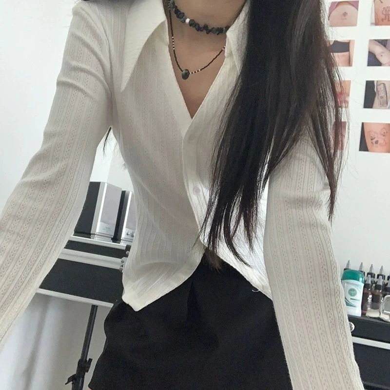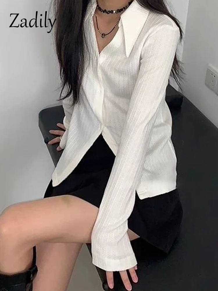 Yipinpay 2023 Autumn Minimalist Style Slim Long Sleeve White Shirt Women Korea Striped Button Up Chiffon Ladies Blouse Female Tops