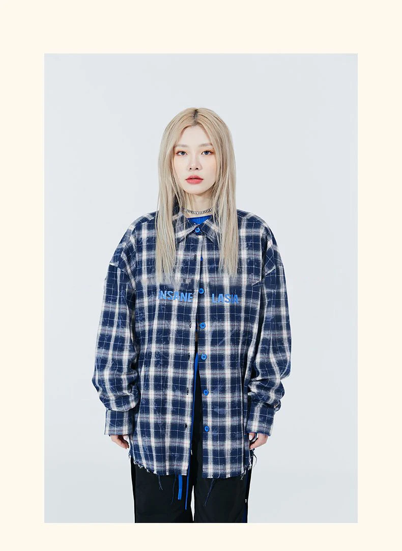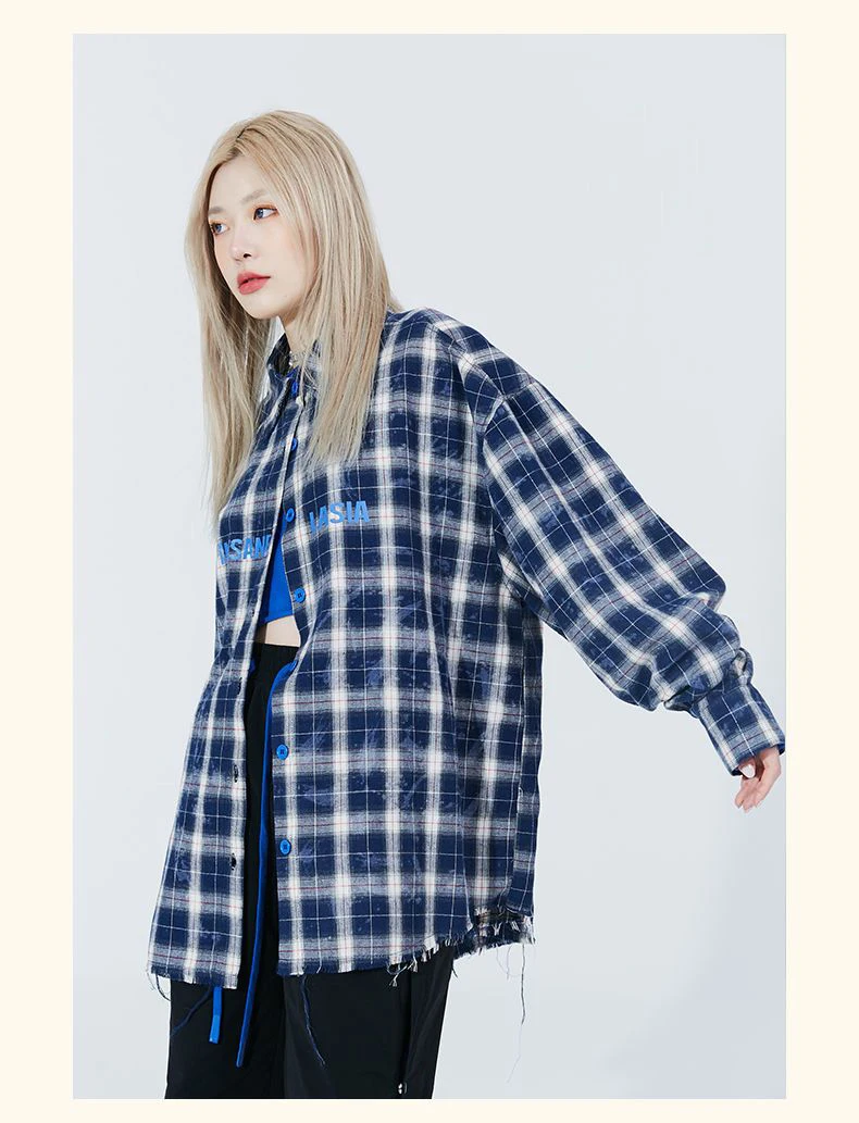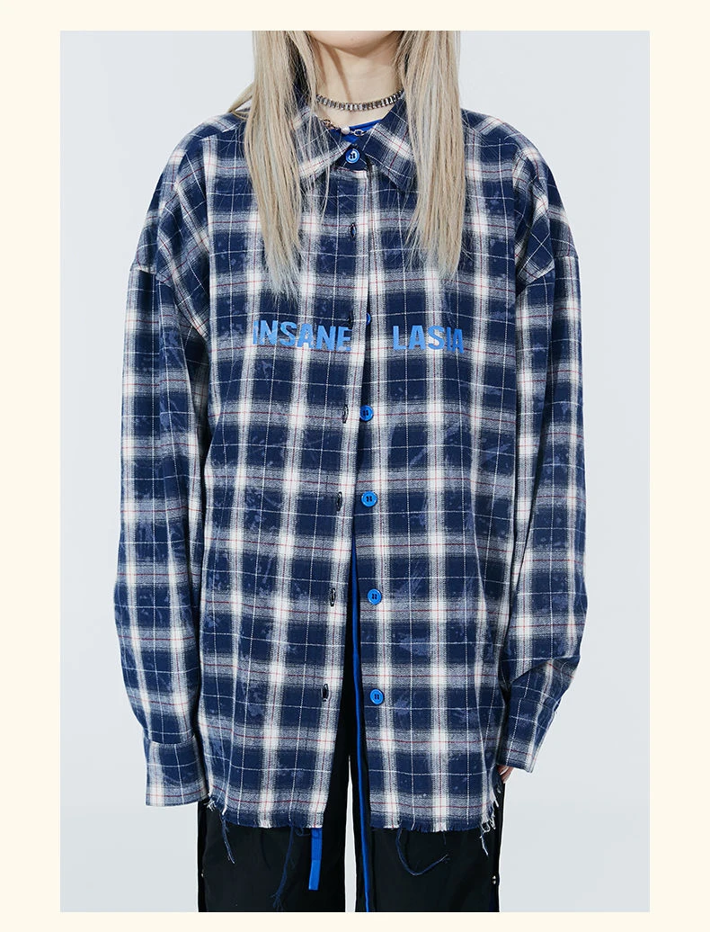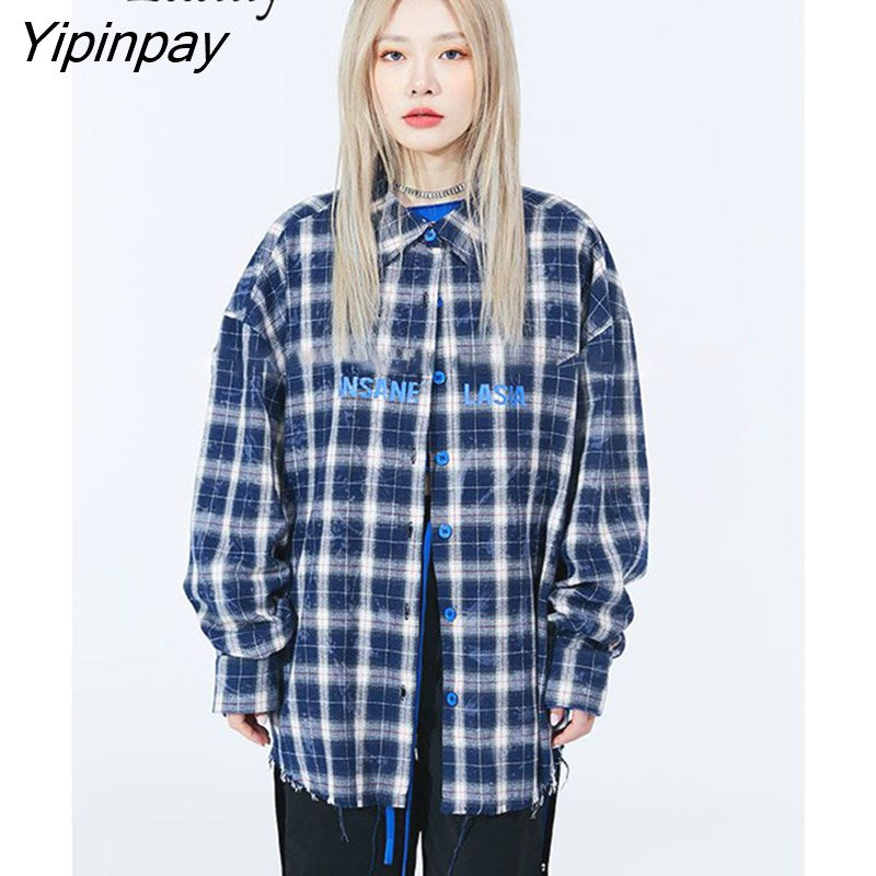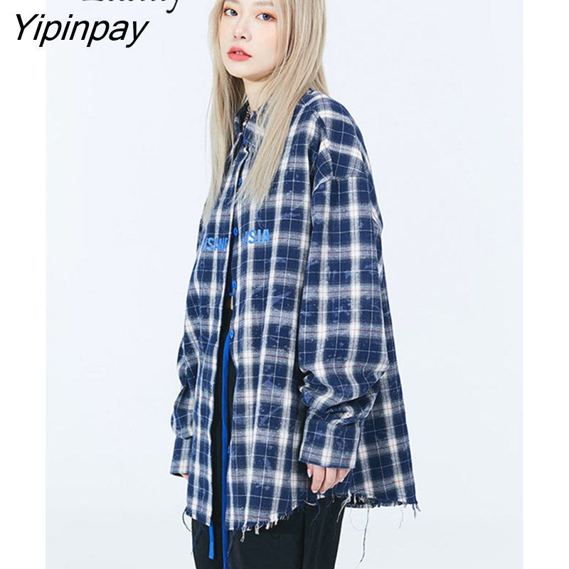Yipinpay 2023 Autumn Oversize Full Sleeve Plaid Long Shirt Women Streetwear Button Up Letter Print Female Tunic Blouse Clothing