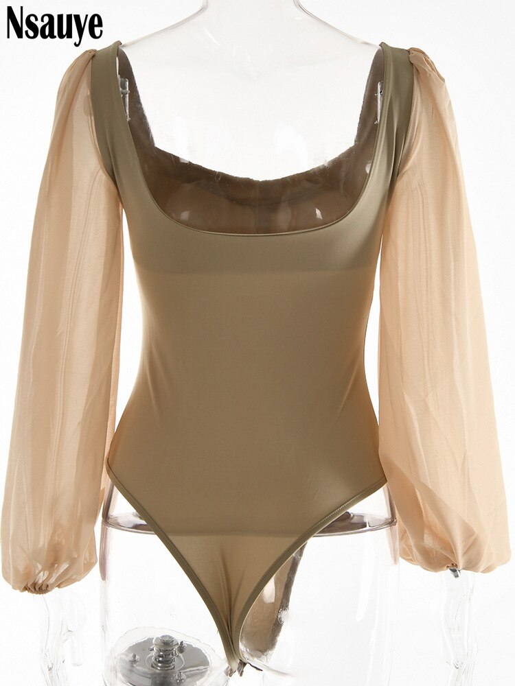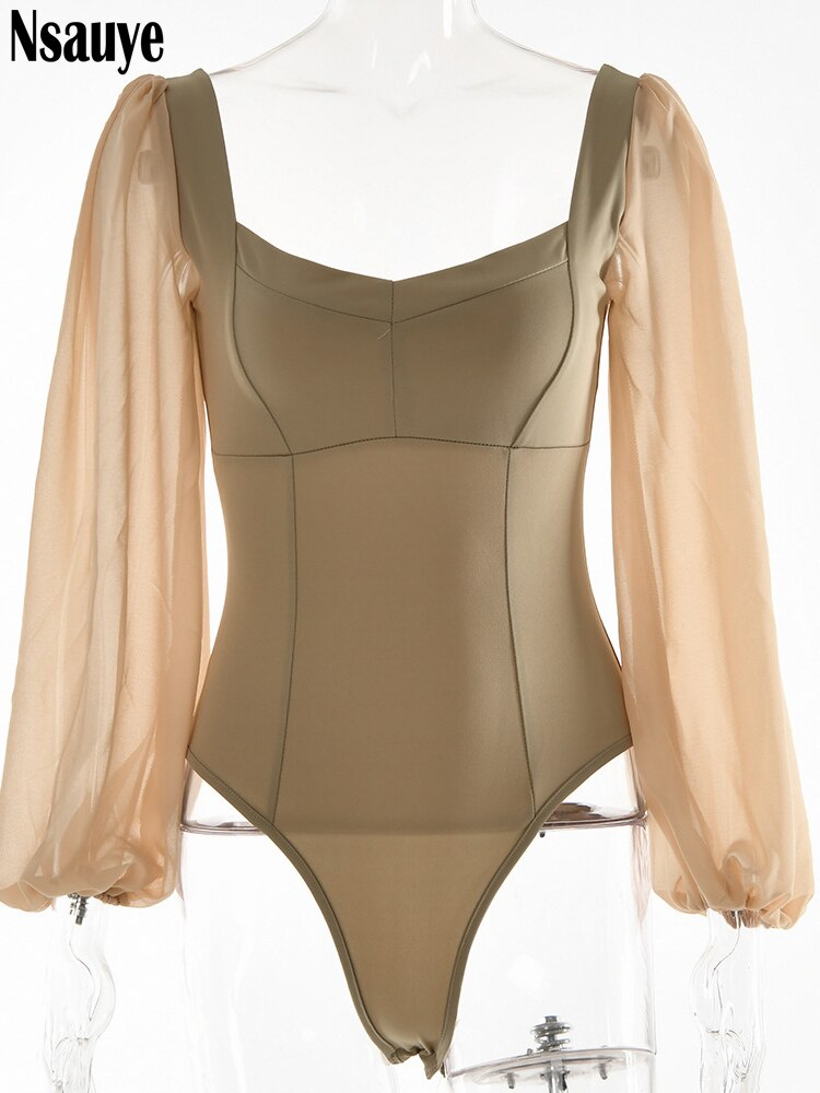 yipinpay 2023 Autumn Summer Sheath Long Puff Sleeve Skinny Women Rompers Bodysuits Y2K Square Collar Fashion Jumpsuit Body Tops