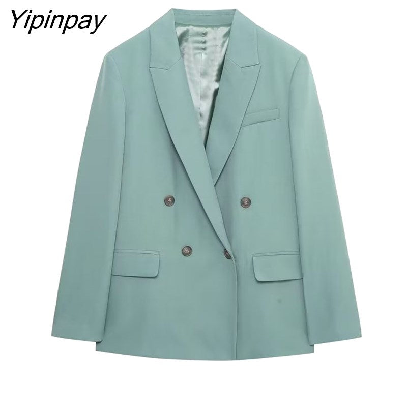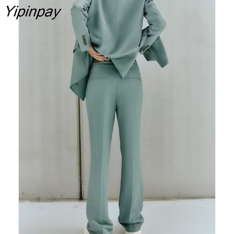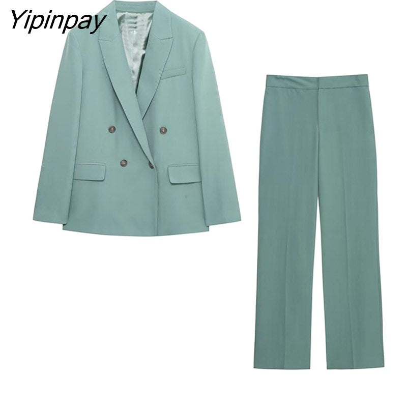 Yipinpay 2023 Autumn Winter Ladies Blazer Pant Sets Office Outfits Long Sleeve Double Breasted Jacket Zipper Trouser Notched Outwear