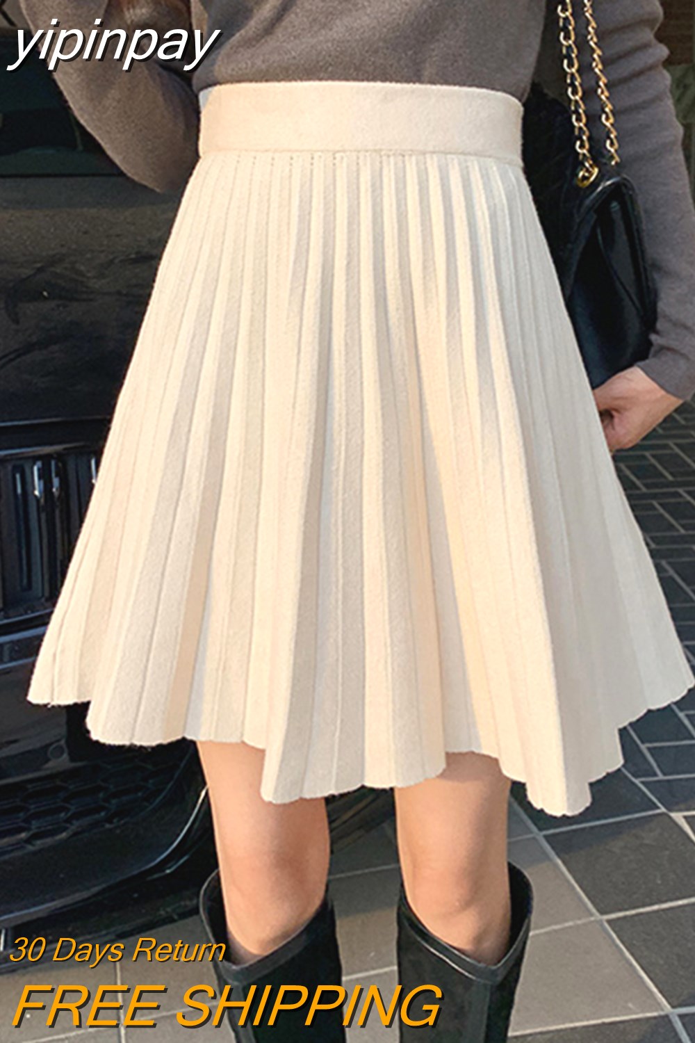 yipinpay 2023 Autumn Winter Short Pleated Knitted Skirts Women Kawaii High Waist Mini A-line Skirt Girls Slim Elegant Faldas