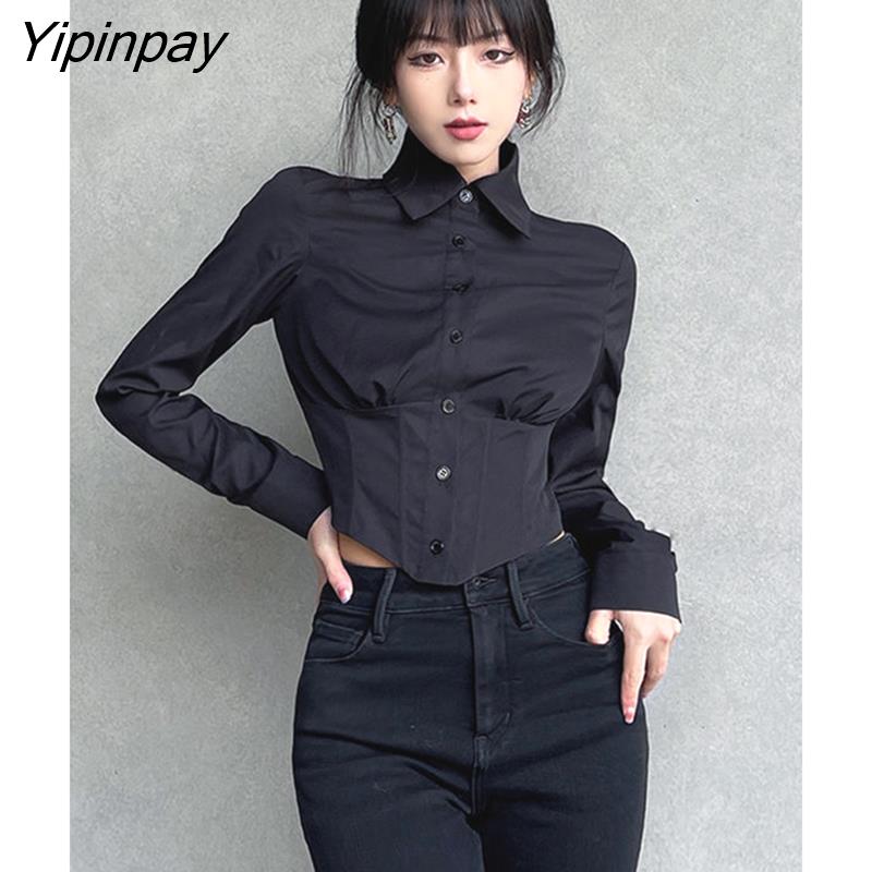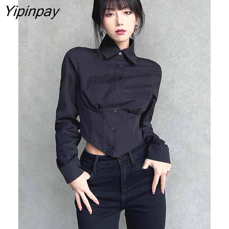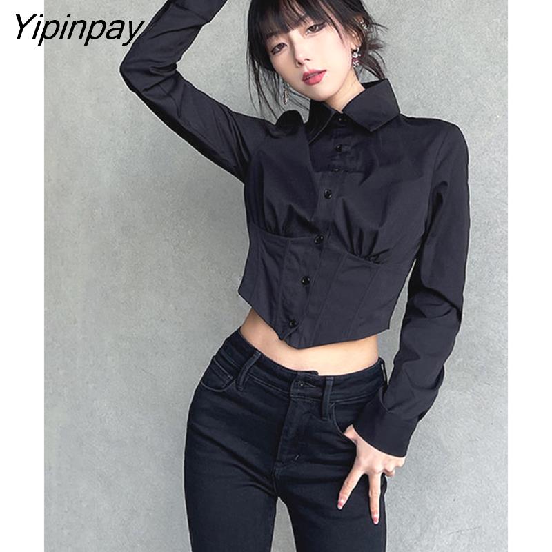 Yipinpay 2023 Autumn Y2K Sexy Long Sleeve Folds Women Shirt Street Gothic Button Ladies Crop Top Club Female Clothing Blouse Tops