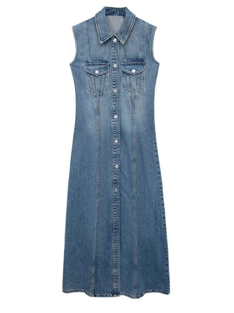 Yipinpay 2023 Blue Denim Dress Woman Jean Long Dresses For Women Sleeveless Midi Dresses Y2k Streetwear Women's Summer Dresses