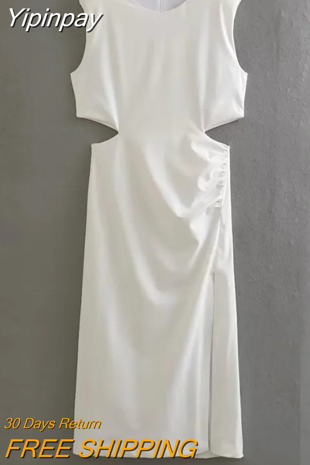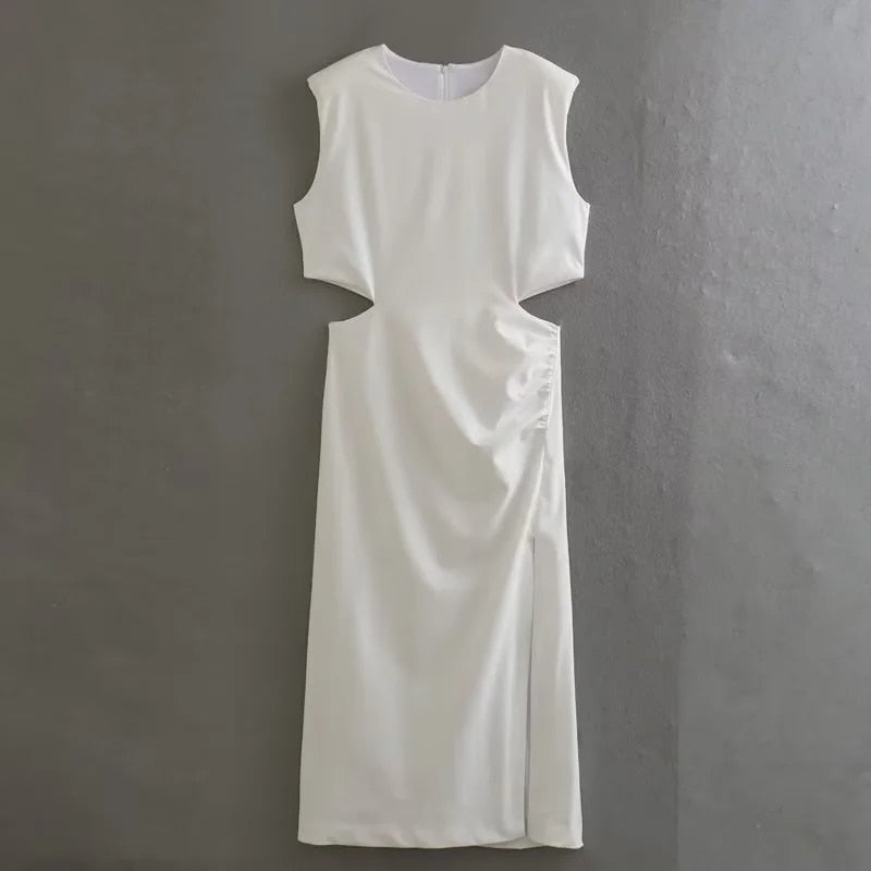 Yipinpay 2023 Cut Out Long Dress Women Summer Sleeveless White Black Dress Woman Fashion Ruched Midi Elegant Party Dresses For Women