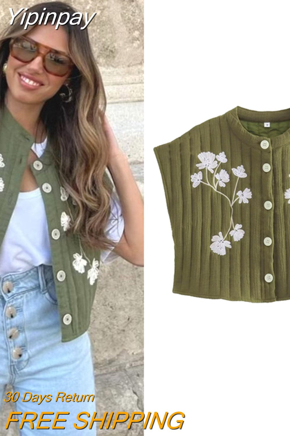 Yipinpay 2023 Fashion Embroidery Cotton Women's Vest Female Sleeveless Vests for Women O-Neck Casual Ladies Tank Tops New In