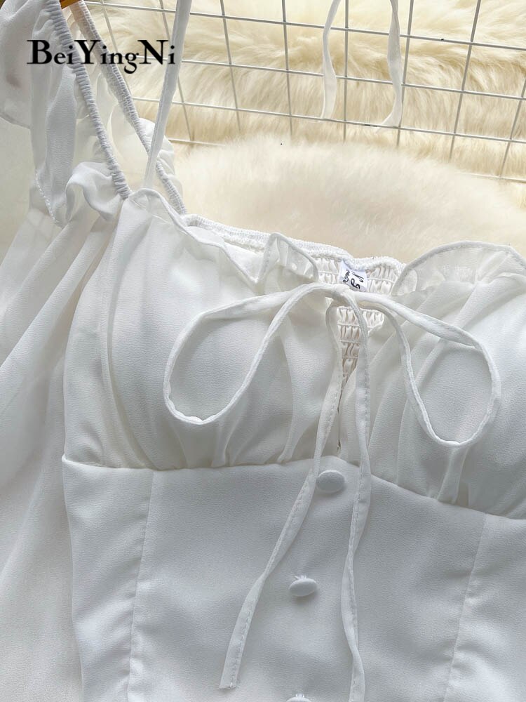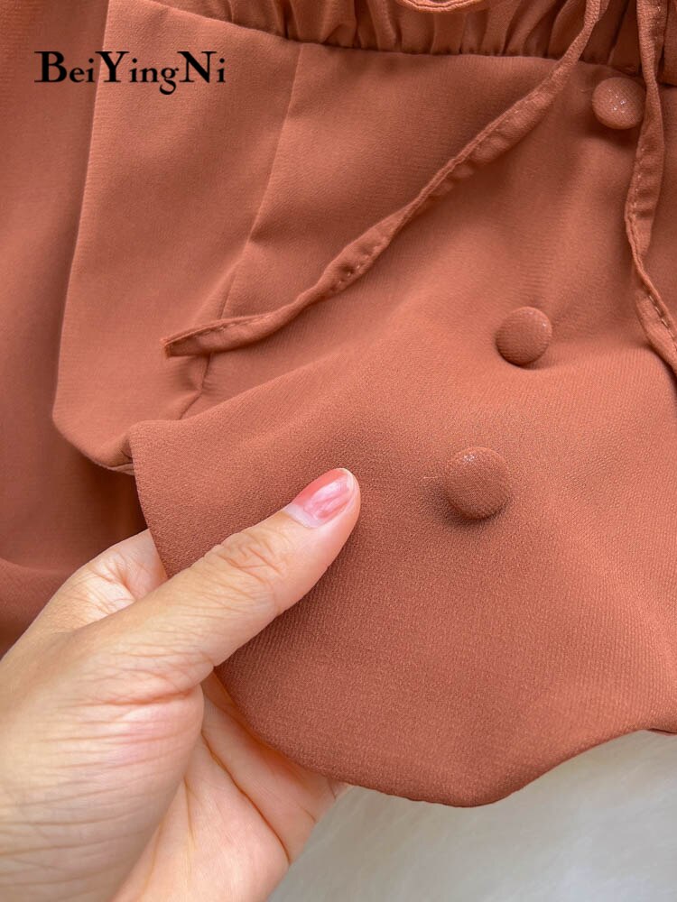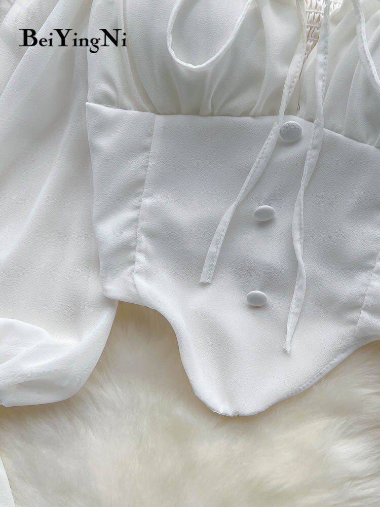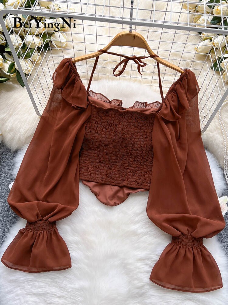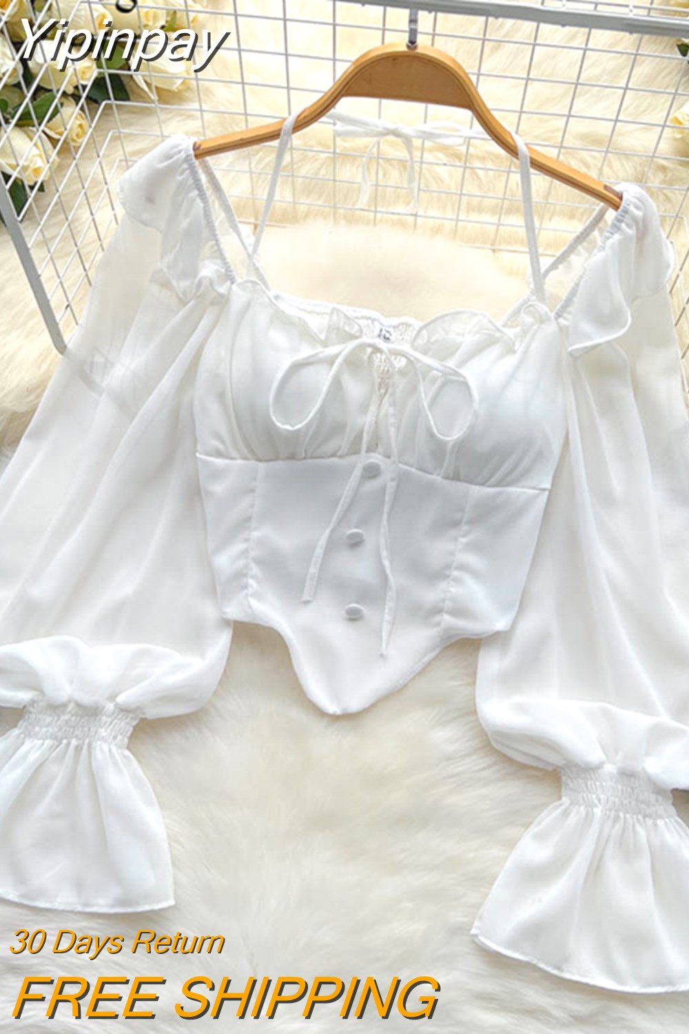 Yipinpay 2023 Fashion French Blouses Shirts Women Solid Color Casual Sexy Long Sleeve Blusas Female Chiffon Lace-up Crop Tops