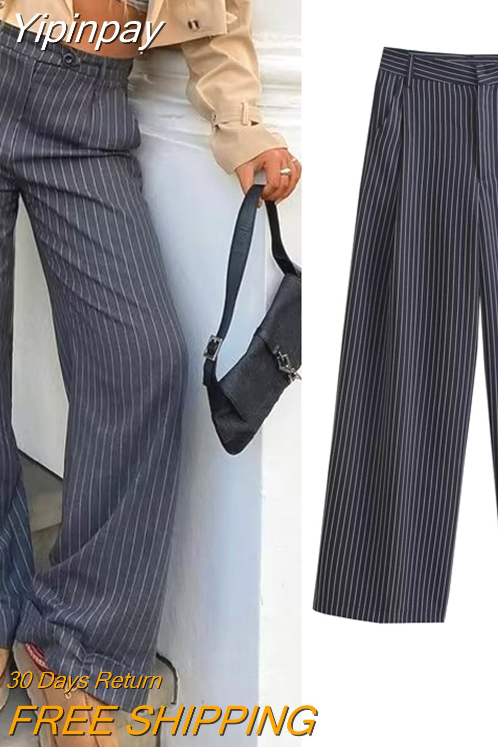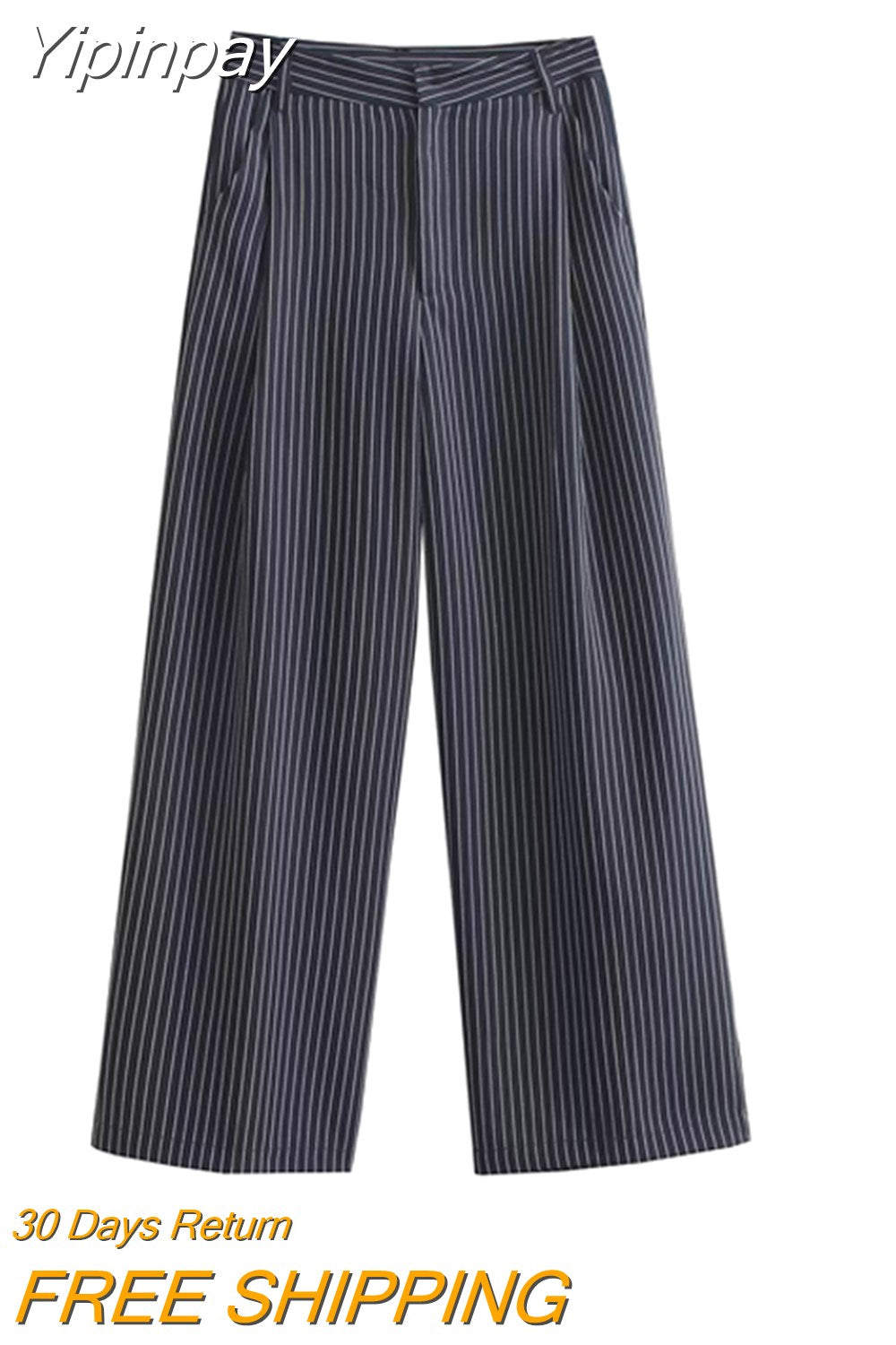 Yipinpay 2023 Fashion Striped Women Wide Leg Pants Female Casual Loose with Zipper Fly Trousers Ladies Mid Waist Chic Elegant Pants
