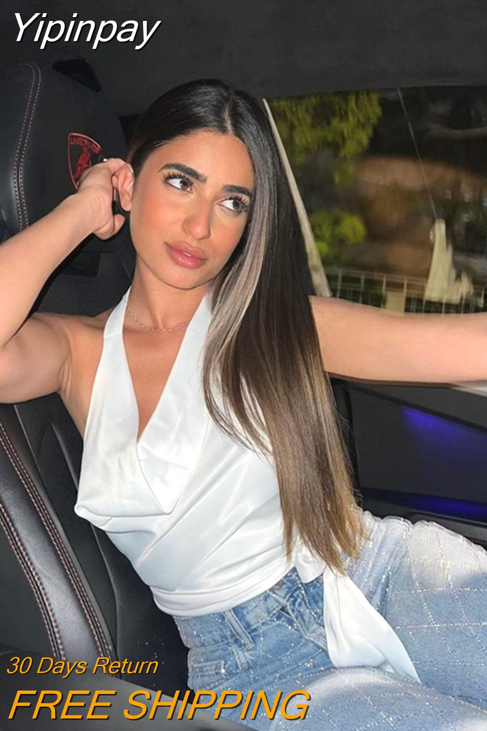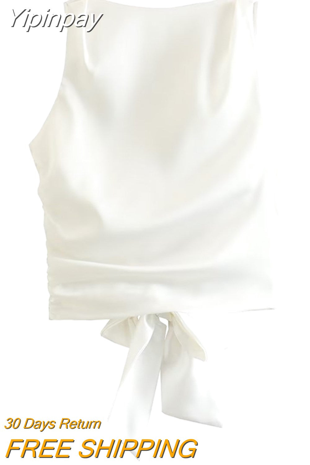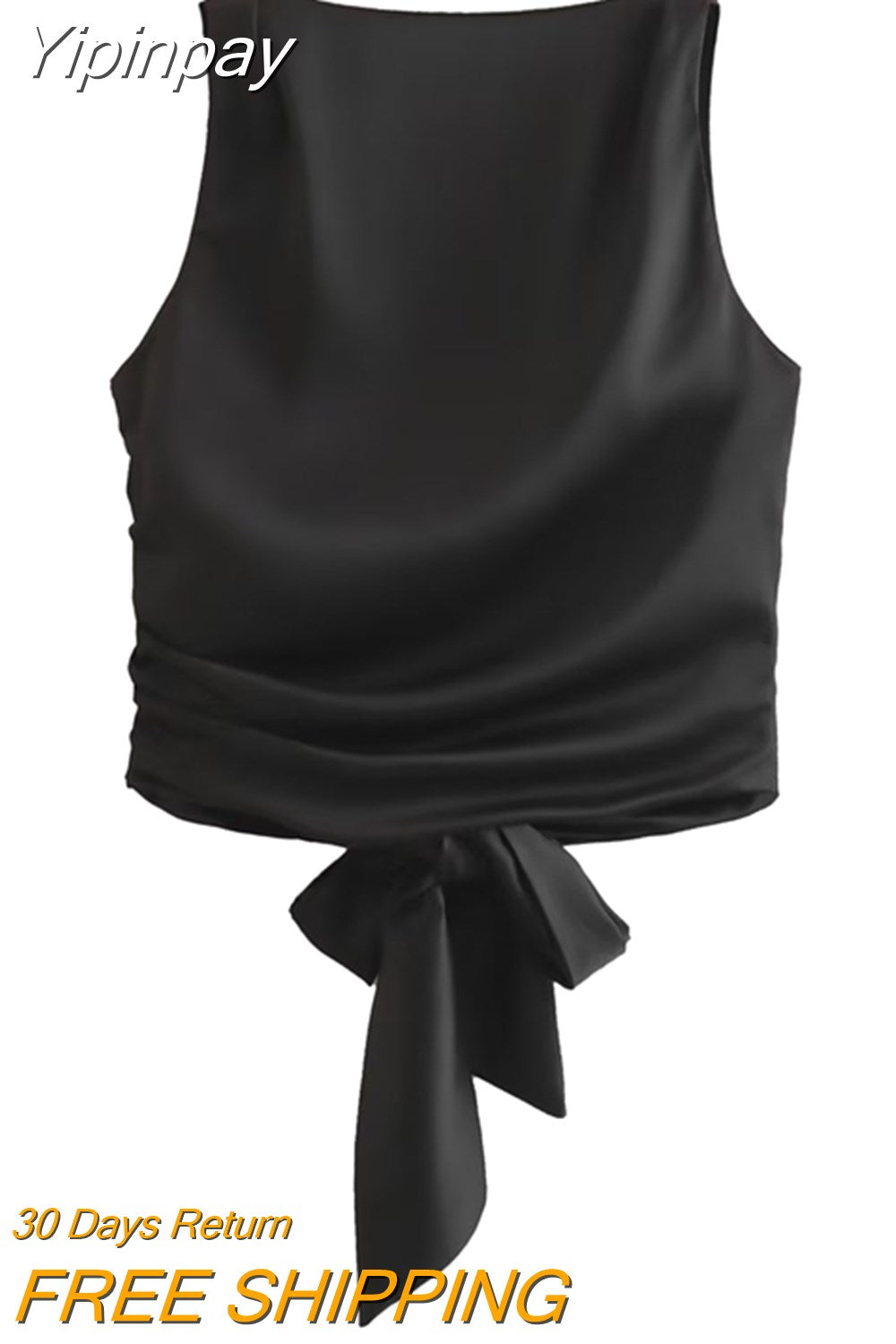 Yipinpay 2023 Fashion Summer Tops for Women Crop Corset Lace Up Top Female Chic Sexy Backless Casual Loose Folds Top Clothes