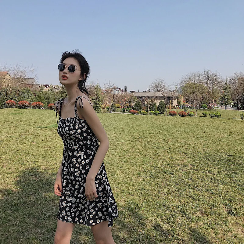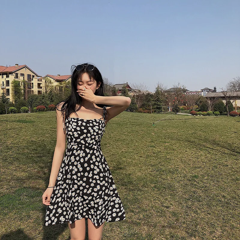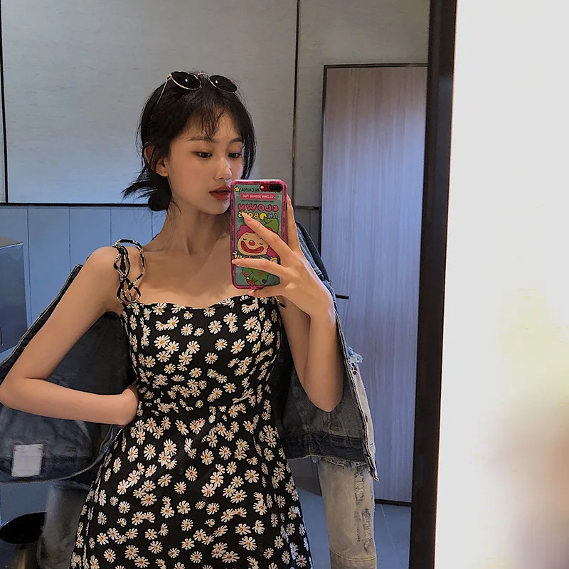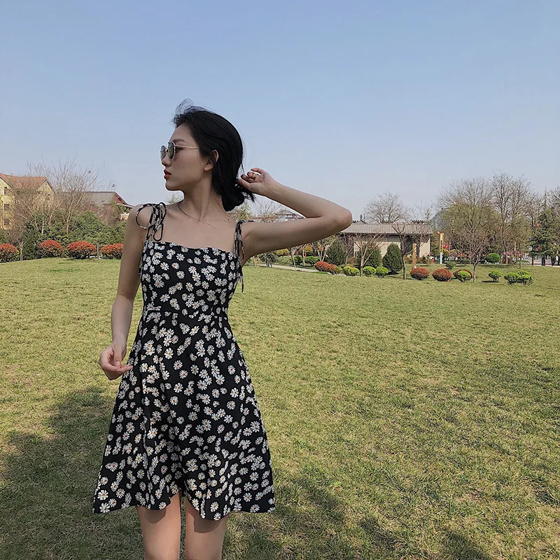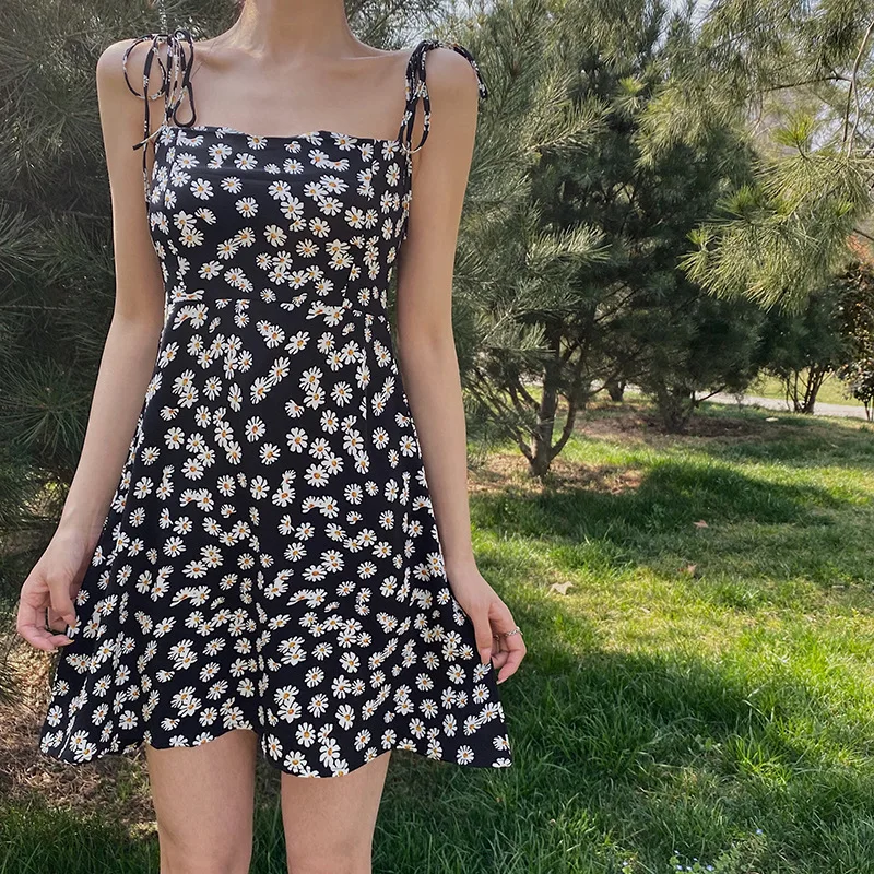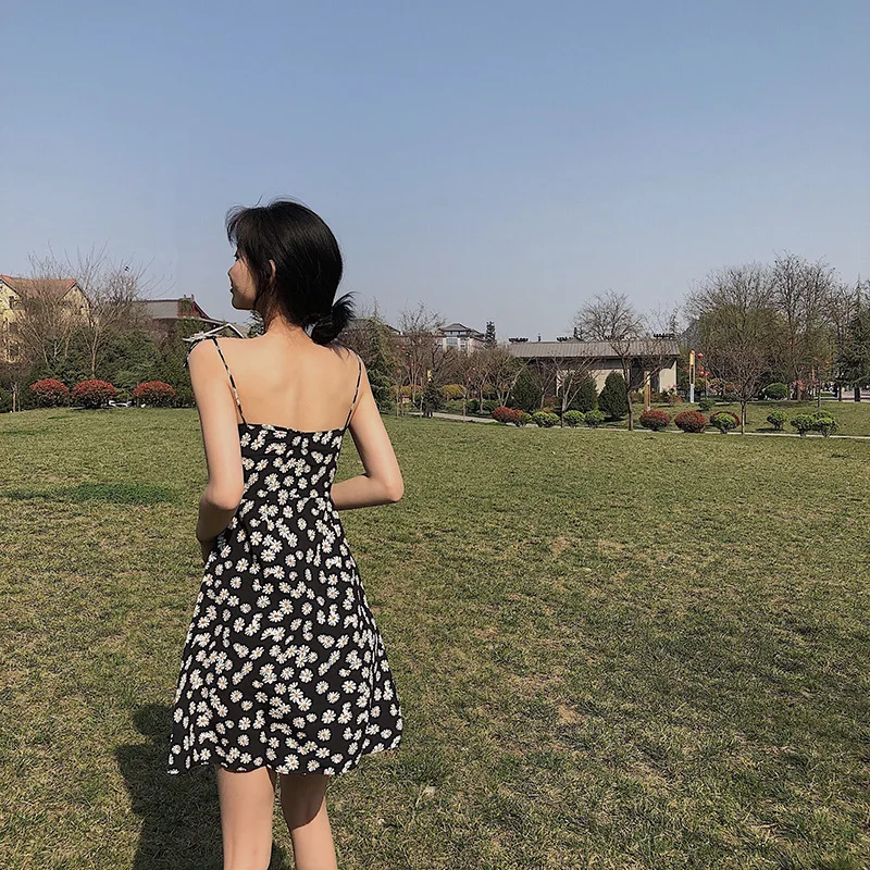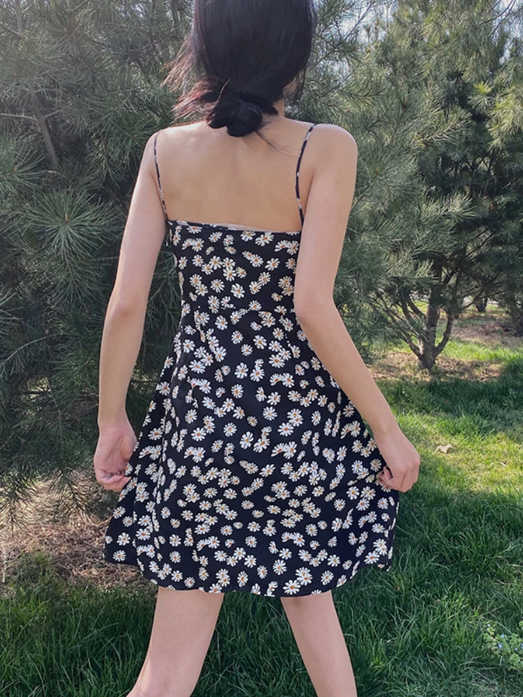 Yipinpay 2023 Floral Printed Women's Dress Vintage French Elegant Casual High Waist Thin Off Shoulder Sleeveless Midi Slip Dresses