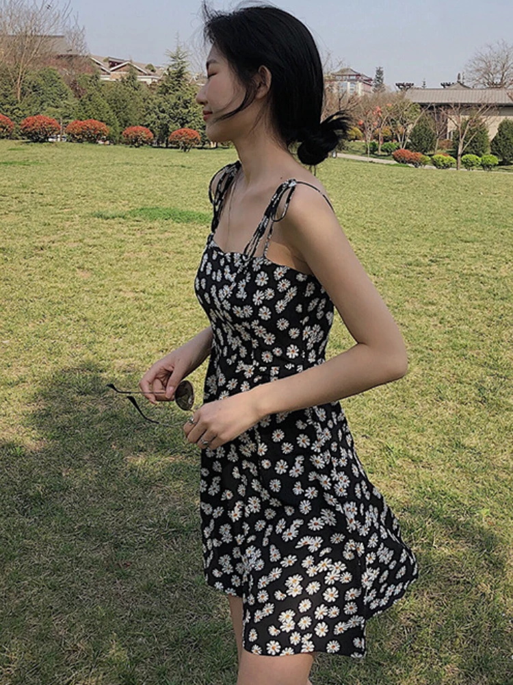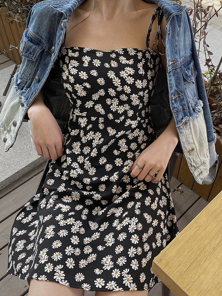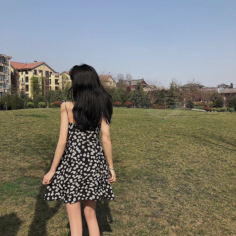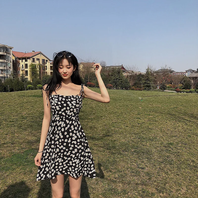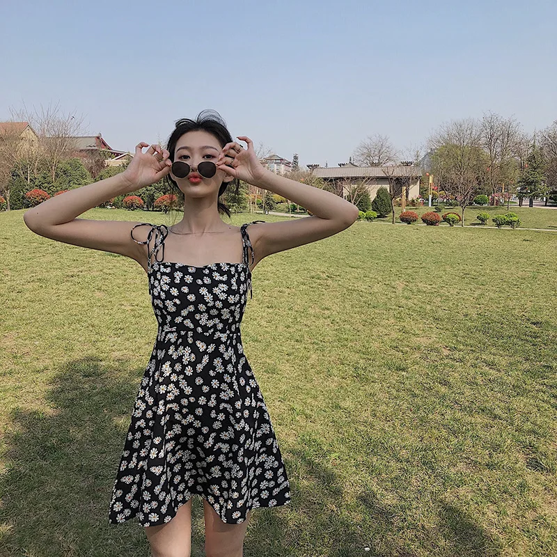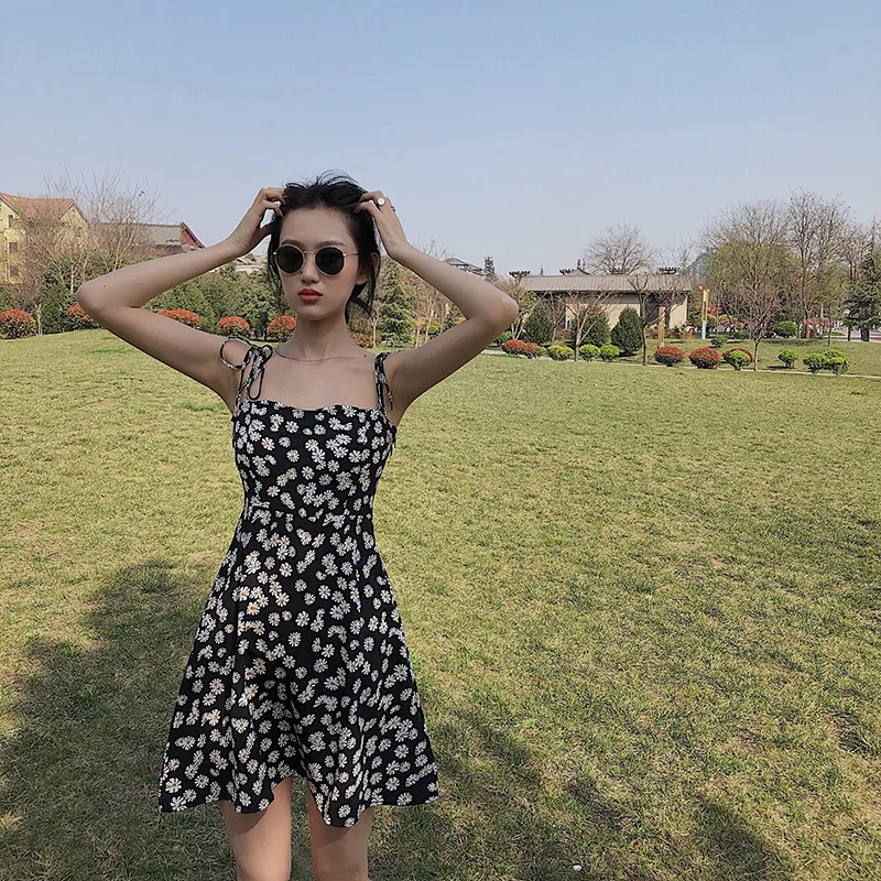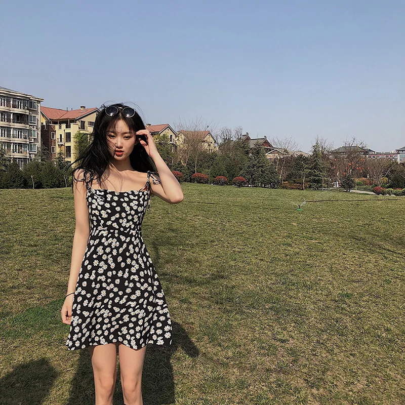 Yipinpay 2023 Floral Printed Women's Dress Vintage French Elegant Casual High Waist Thin Off Shoulder Sleeveless Midi Slip Dresses