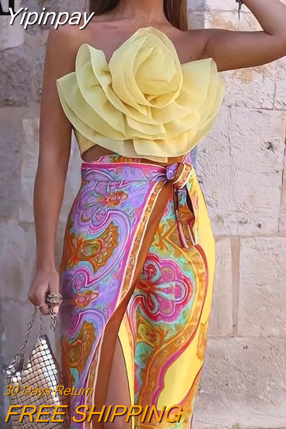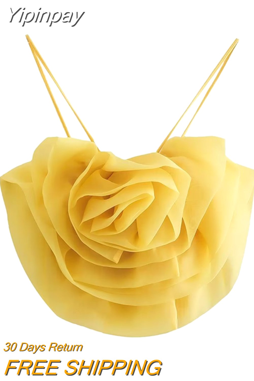 Yipinpay 2023 Flower Corset Top Female Off Shoulder Crop Tops For Women Organza Backless Summer Sexy Tops Woman Sleeveless Tank Top