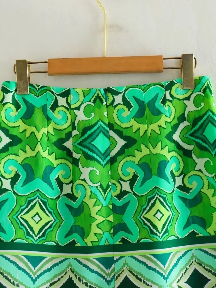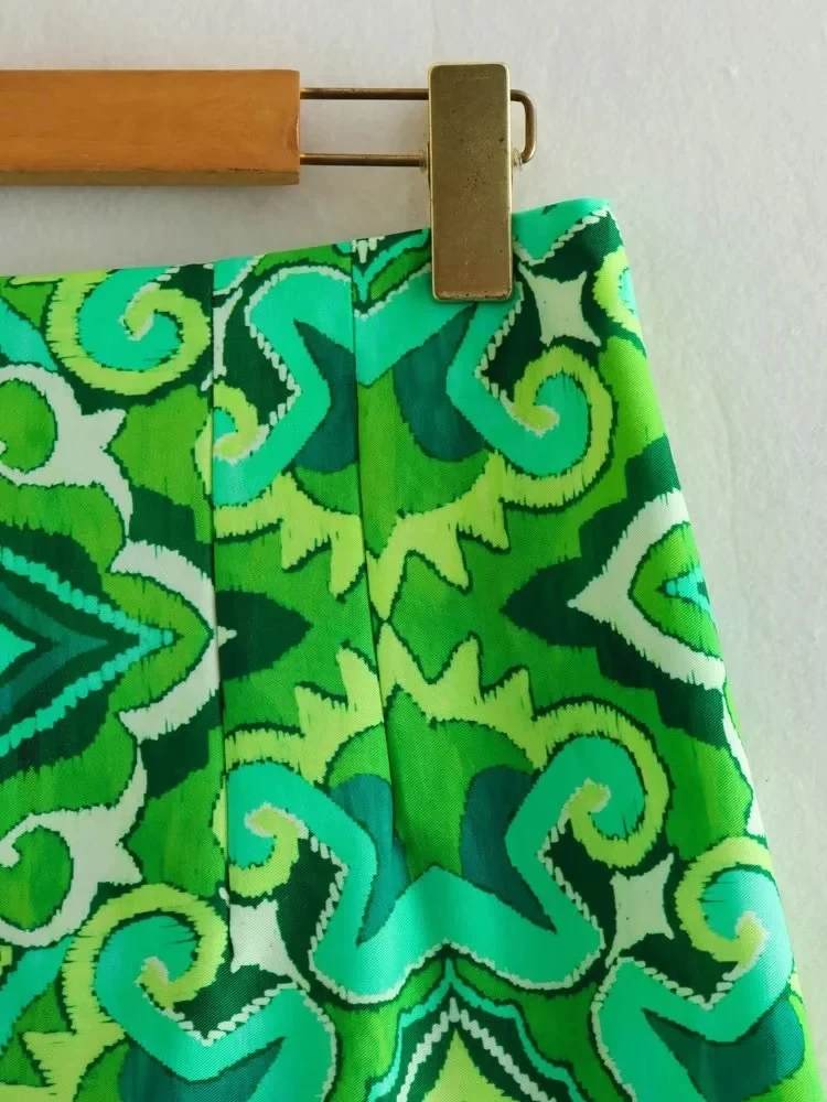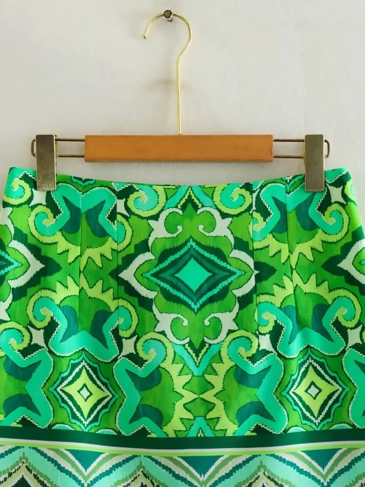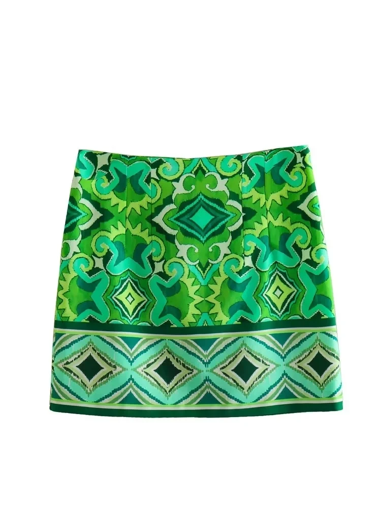 Yipinpay 2023 Green Mini Skirts For Women High Waist Skirt Woman Vintage Print Short Skirts Woman Fashion Boho Summer Beach Skirt